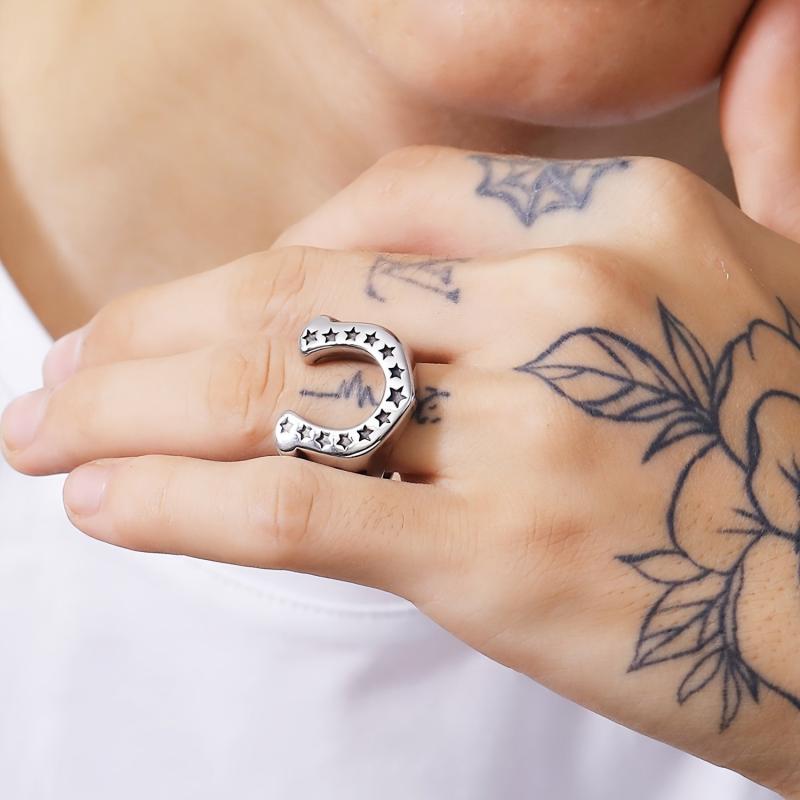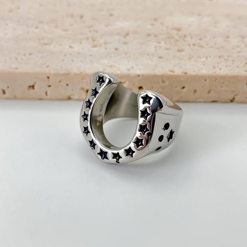 Add a touch of hip hop style to your outfits with this stainless steel U-shaped star ring. Perfect for parties, banquets, and daily wear, it's a versatile accessory for all seasons.