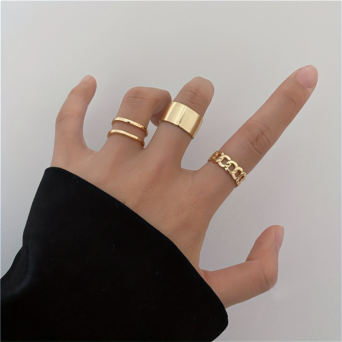Add a touch of hip hop style to your look with this open adjustable ring featuring three pieces. Perfect for daily wear or special occasions.