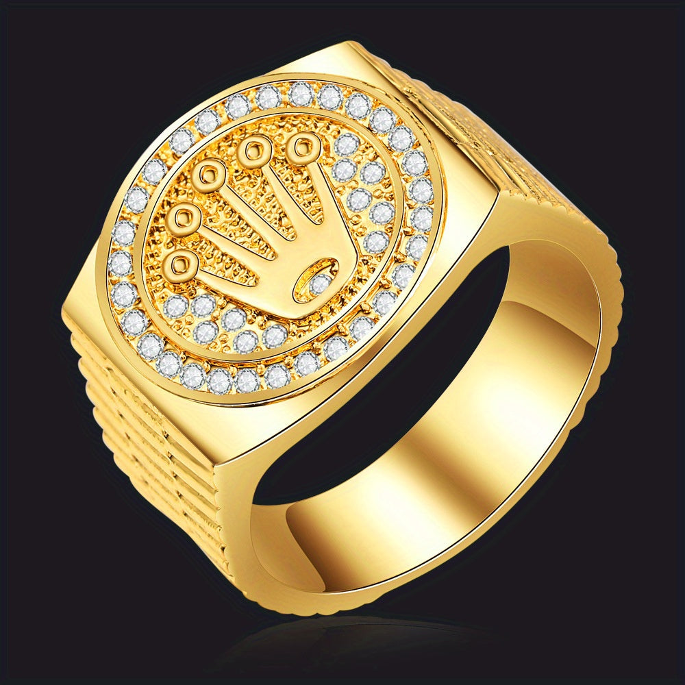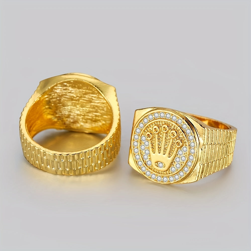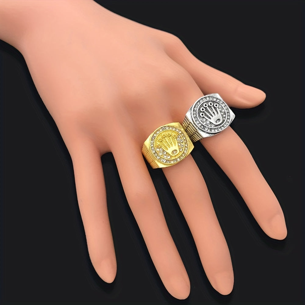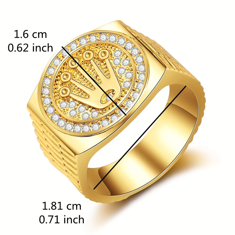 Embrace the hip hop style with this stylish men's ring featuring a palm and crown pattern embellished with dazzling rhinestones.