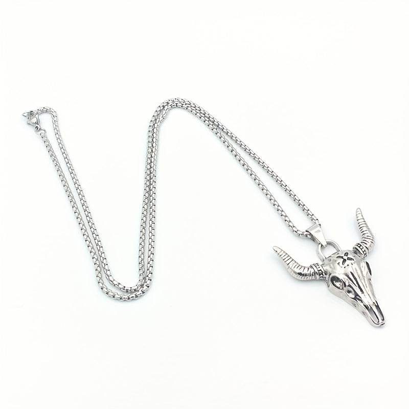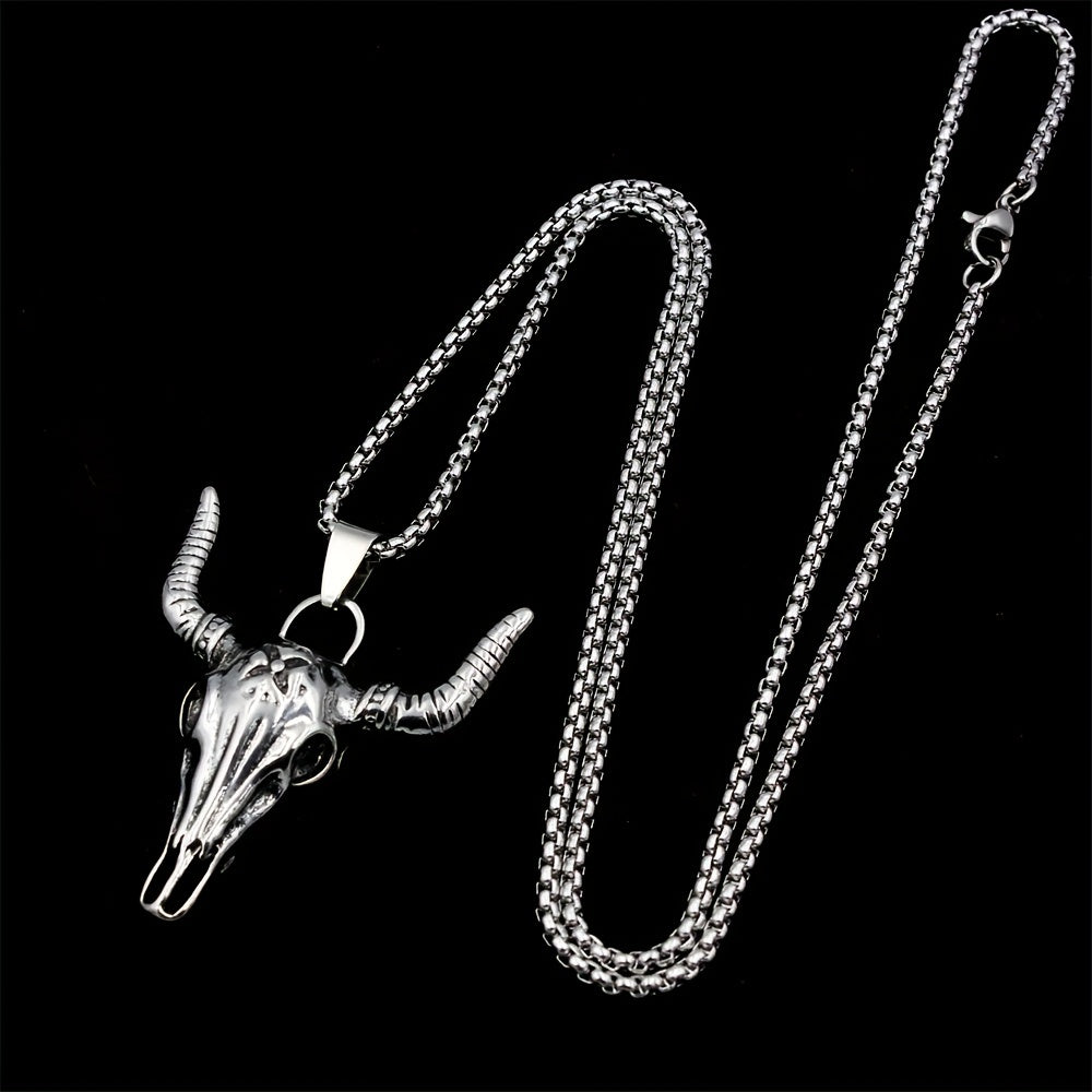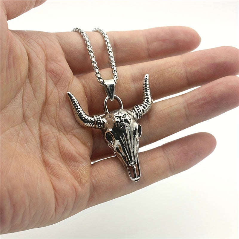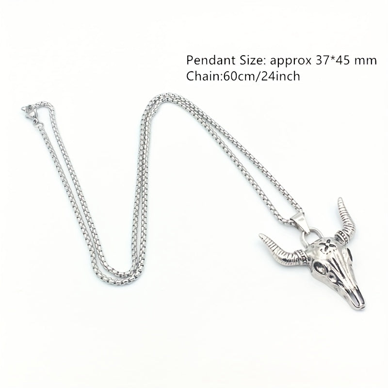 Make a bold statement with this stylish Tibetan silver pendant necklace featuring a cow bull ox head skull design. Ideal for boys and men with a hip hop fashion sense.