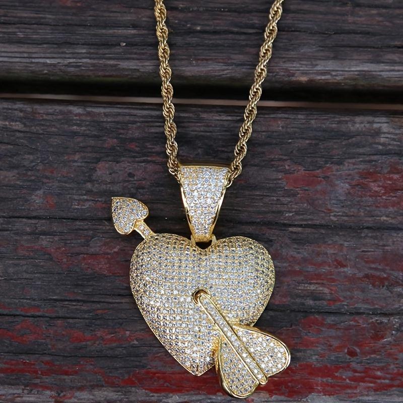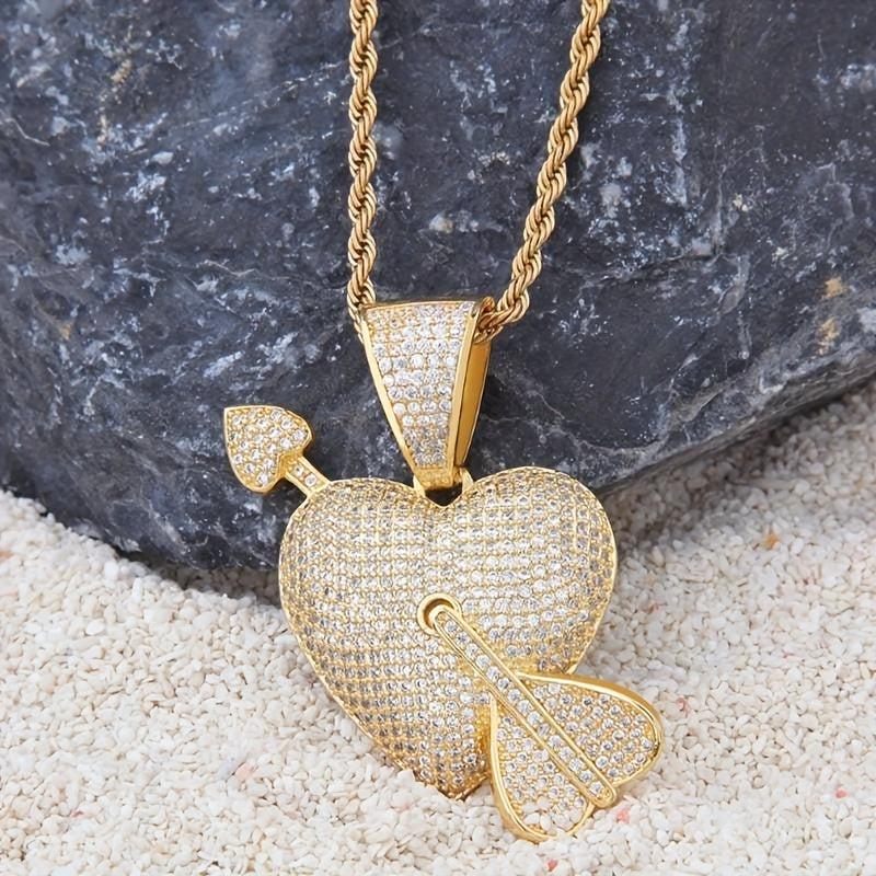 Make a stylish statement with this Hip Hop Rap Cupid Arrow Heart Pendant Necklace. Suitable for parties and banquets.