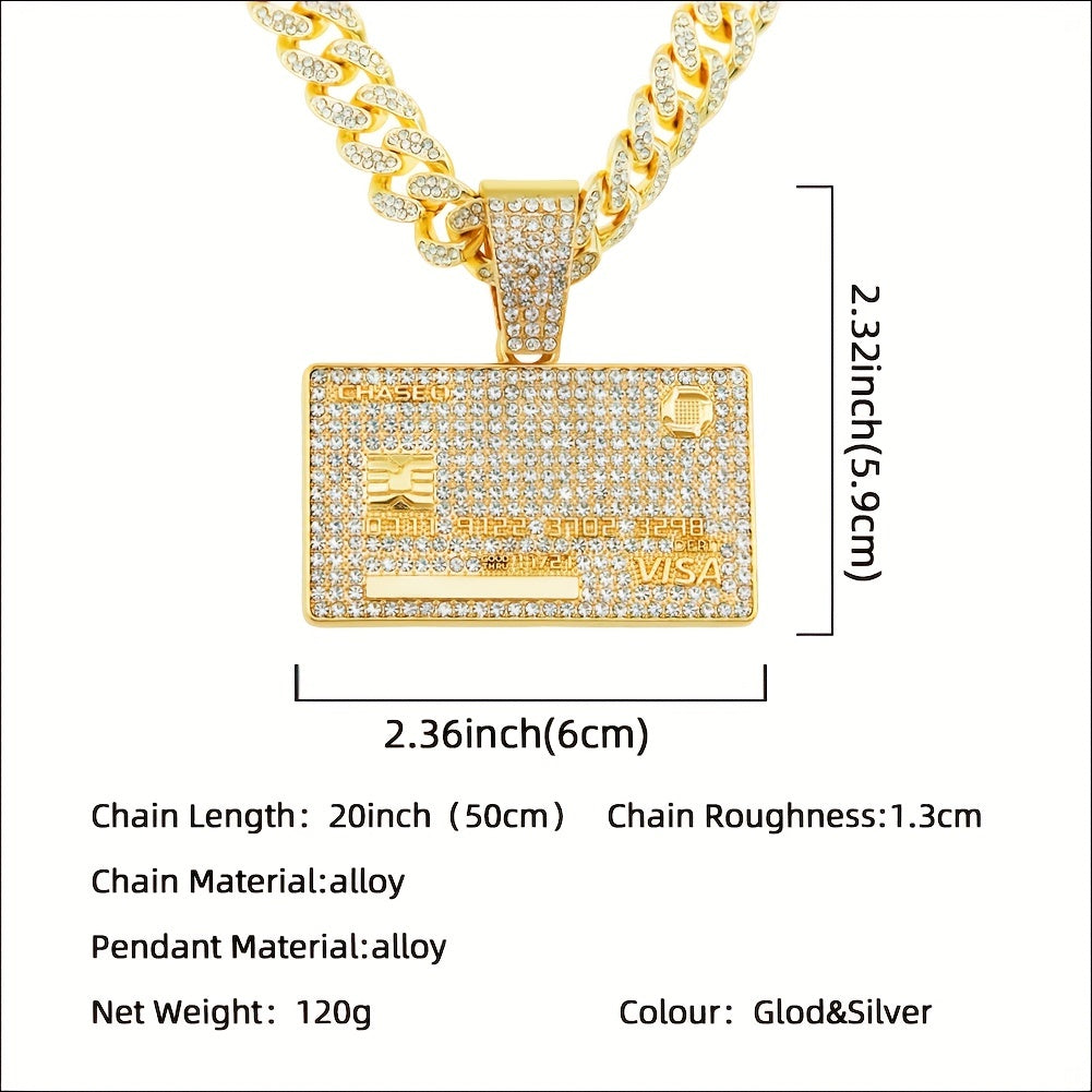 This stylish hip hop rock card-shaped pendant necklace is perfect for men who want to make a statement. The pendant is adorned with rhinestones and hangs on a Cuban chain.