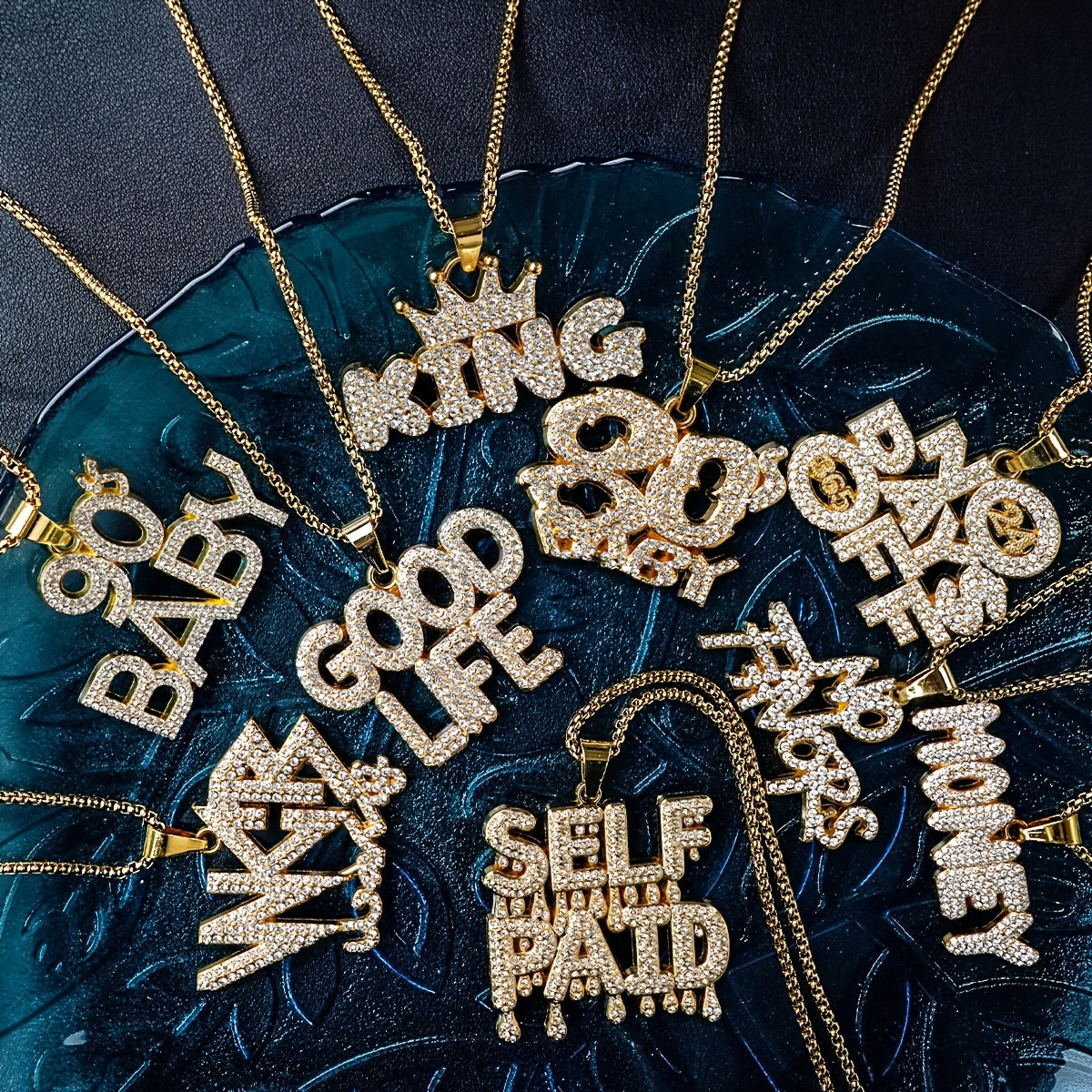 Add bling to your style with this hip hop pendant necklace featuring a rhinestone letter pendant on a Cuban link chain.