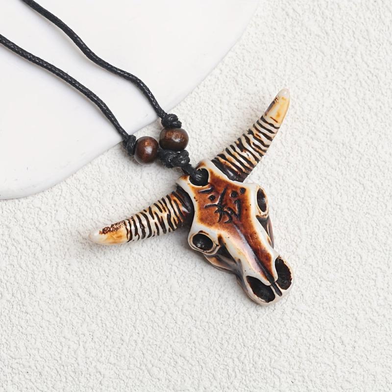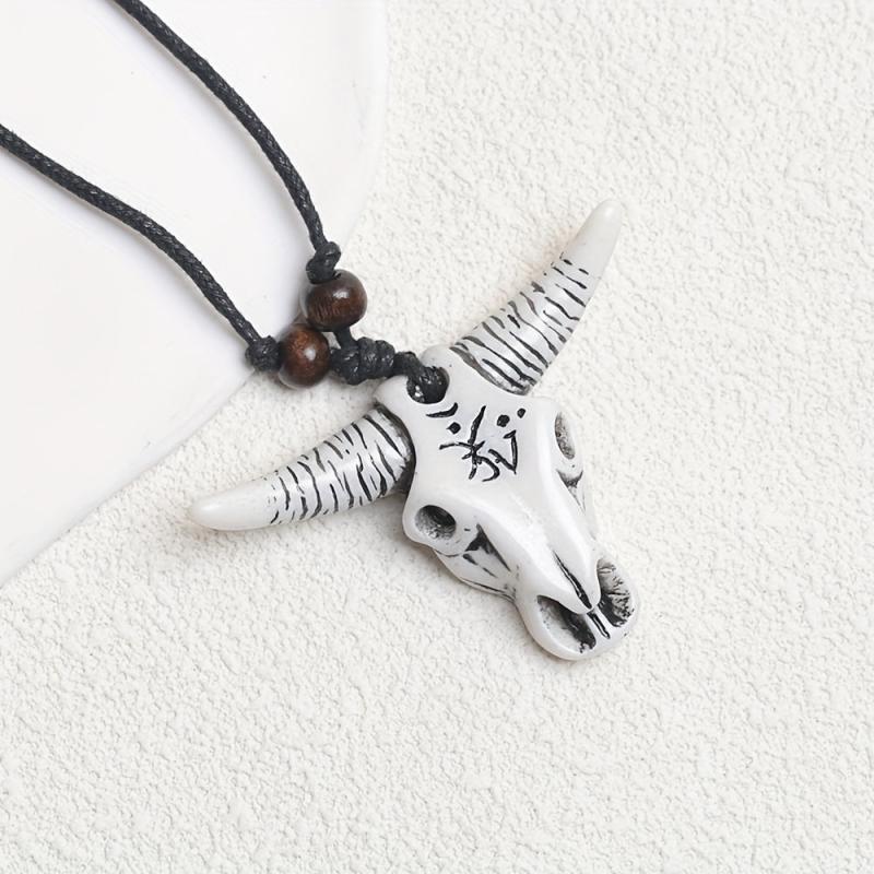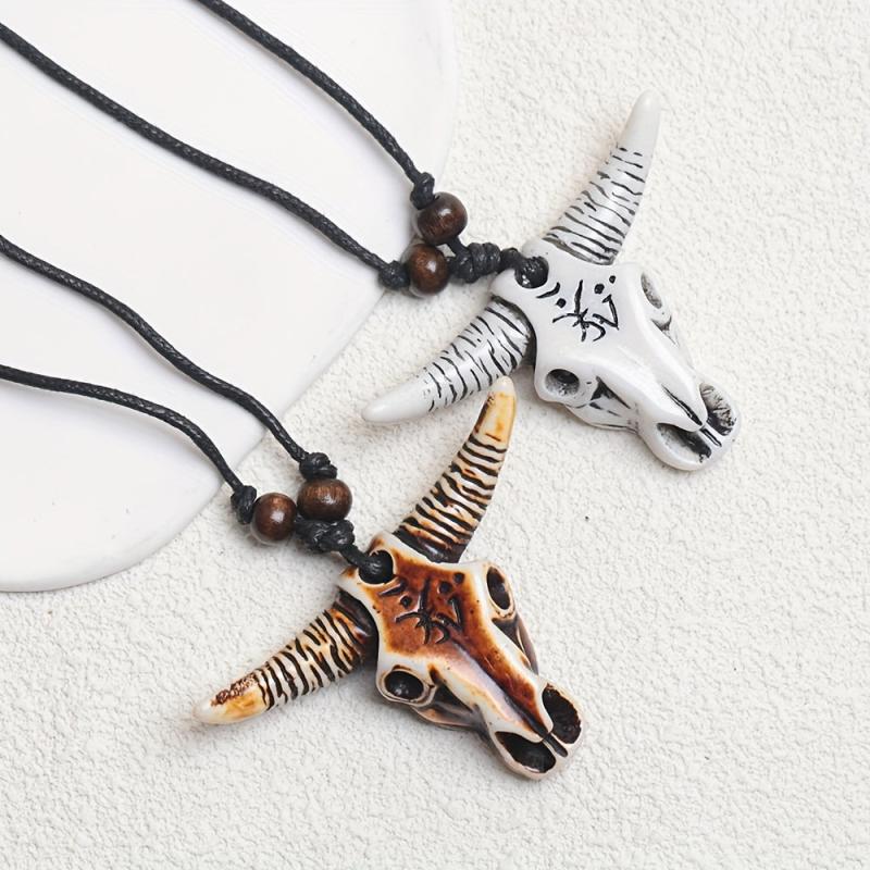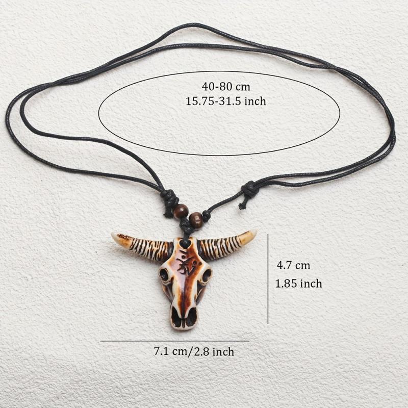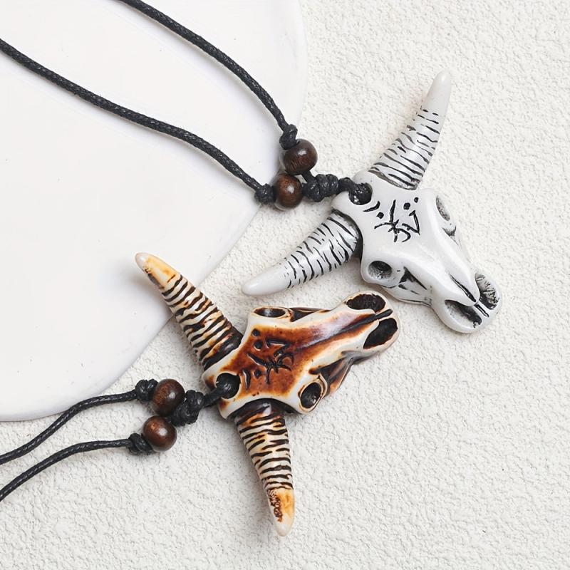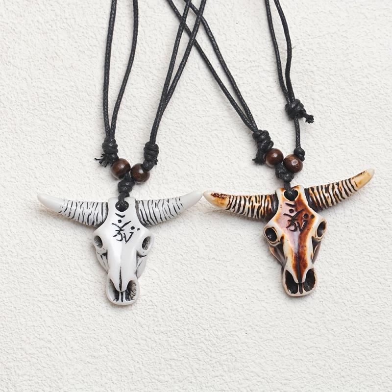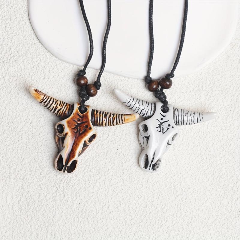 Unique and stylish couple necklace set, perfect for daily wear. Great Valentine's gift for your partner. Features a skull and bull skull pendant.