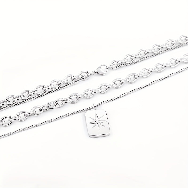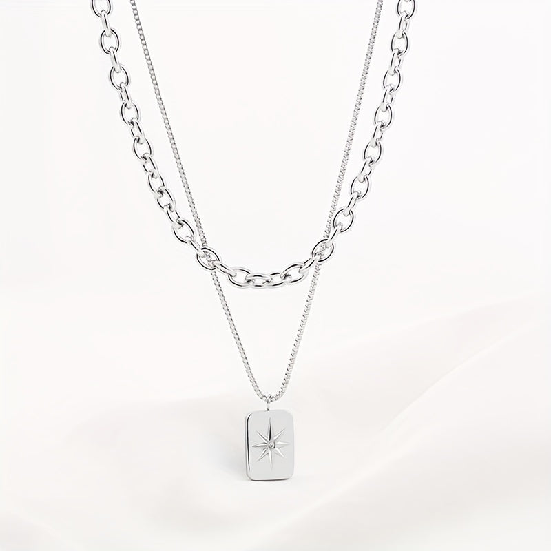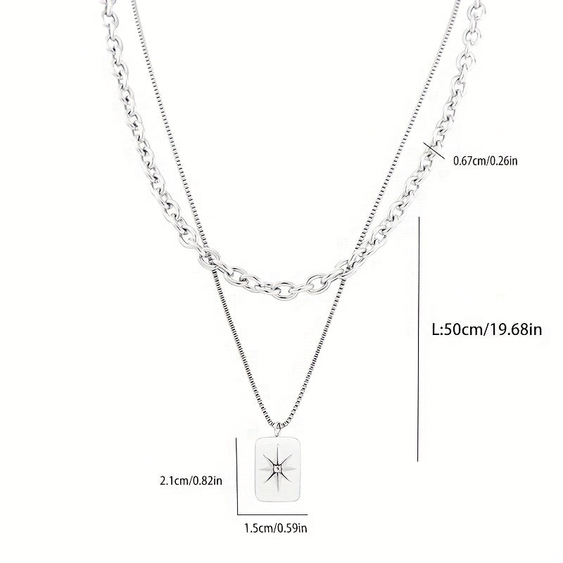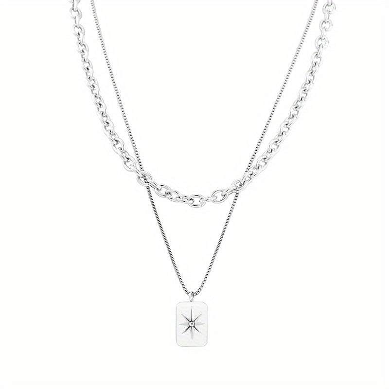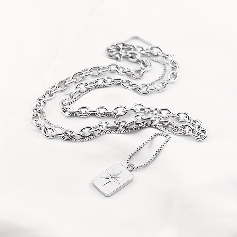This hip hop necklace features a stainless steel silver eight-pointed star pendant, perfect for daily commuting and adding a stylish touch to any outfit.