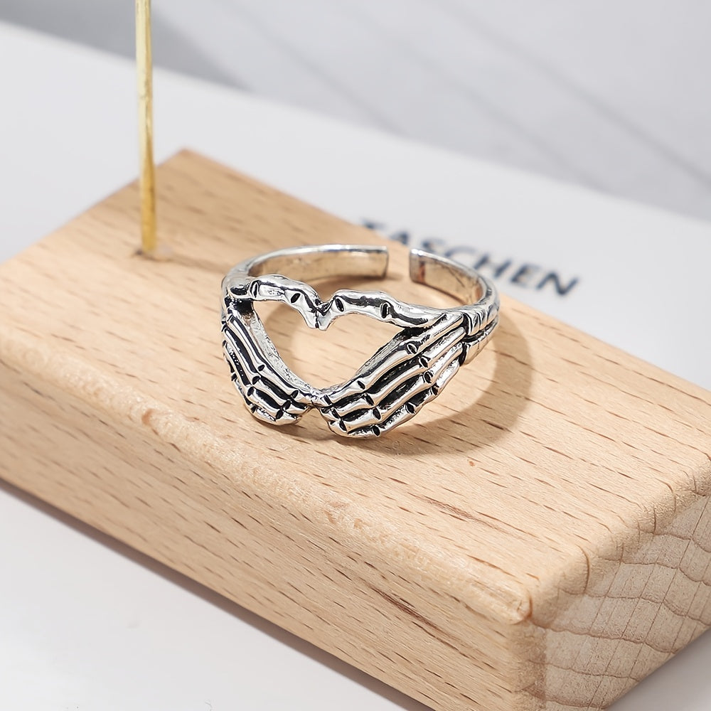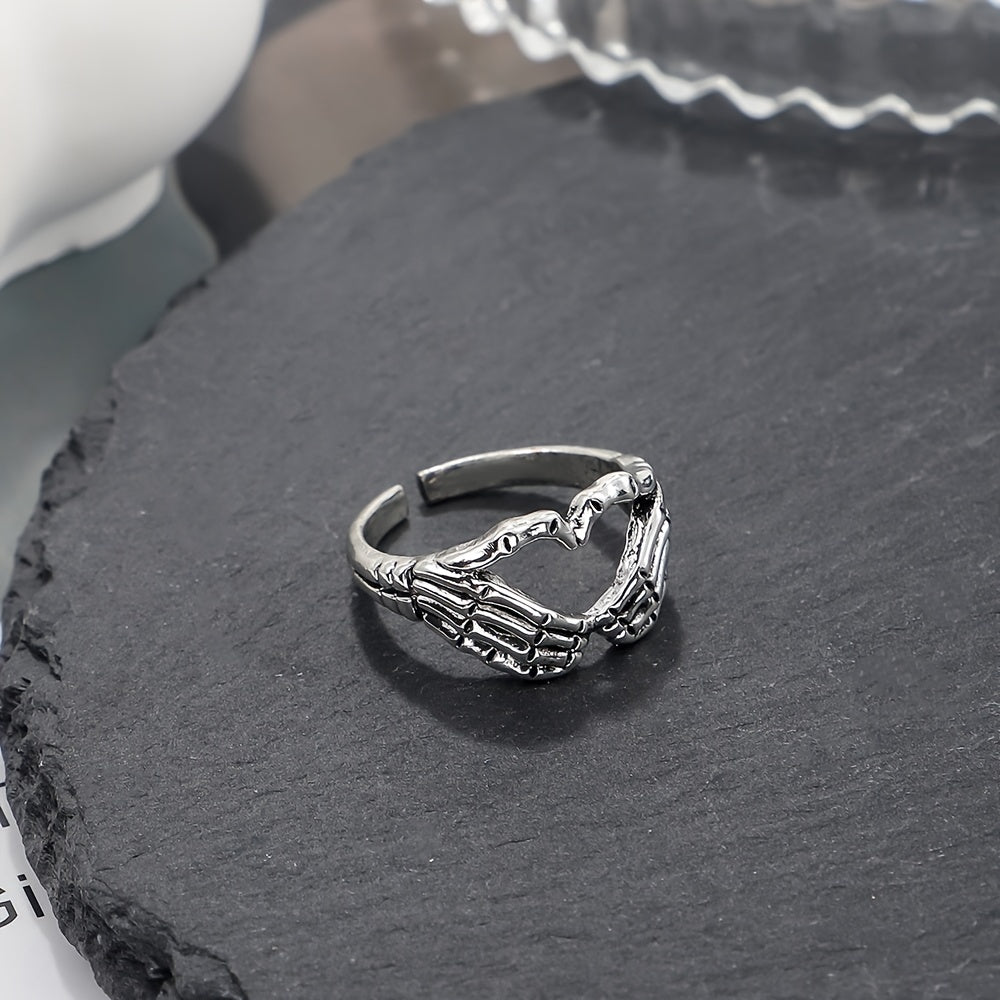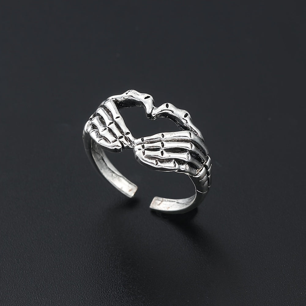 This punk retro finger ring features a skull and crossbones gesture design, perfect for adding a touch of personality to your style. Made of high-quality alloy material.