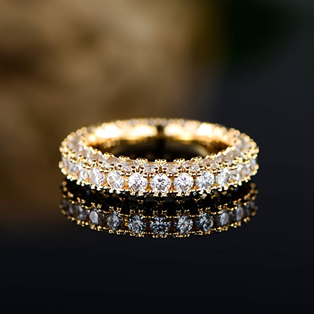 This hip hop style ring features full rhinestones for a bold and stylish look. Perfect for couples or individuals looking to make a statement with their jewelry.