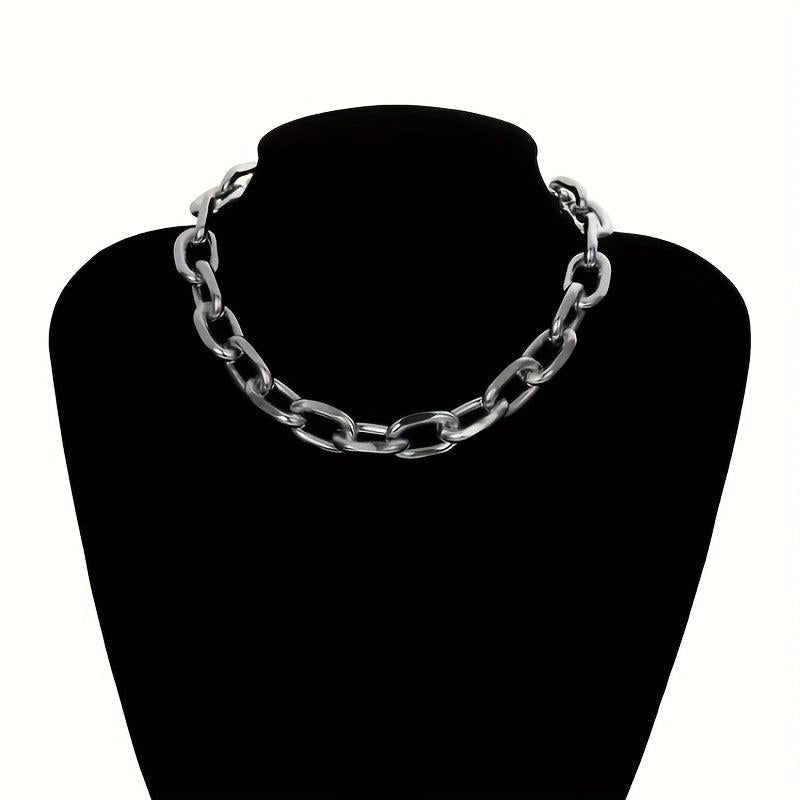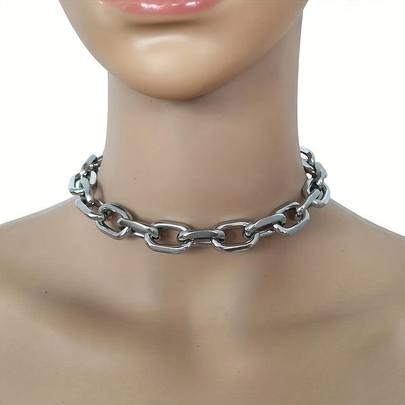 Make a statement with this bold and edgy stainless steel choker necklace. Perfect for casual parties and everyday wear, this piece features large chain links for a unique look.