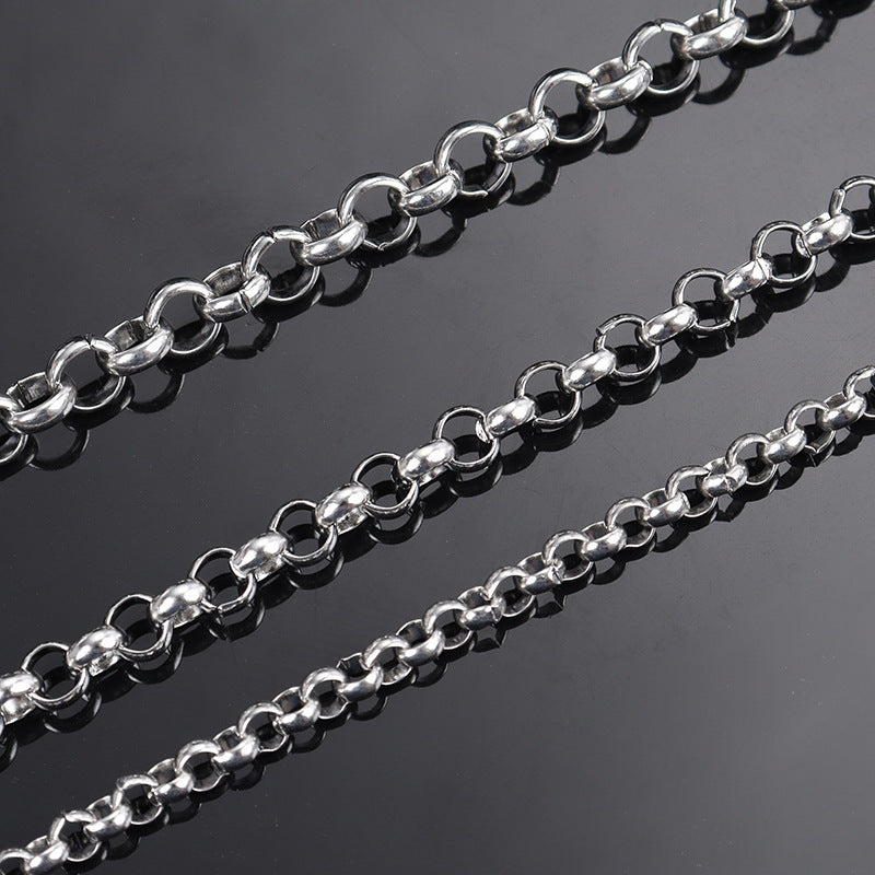 Unisex minimalist necklace with round hollow design, 2mm thickness. Perfect vintage hip hop style accessory.