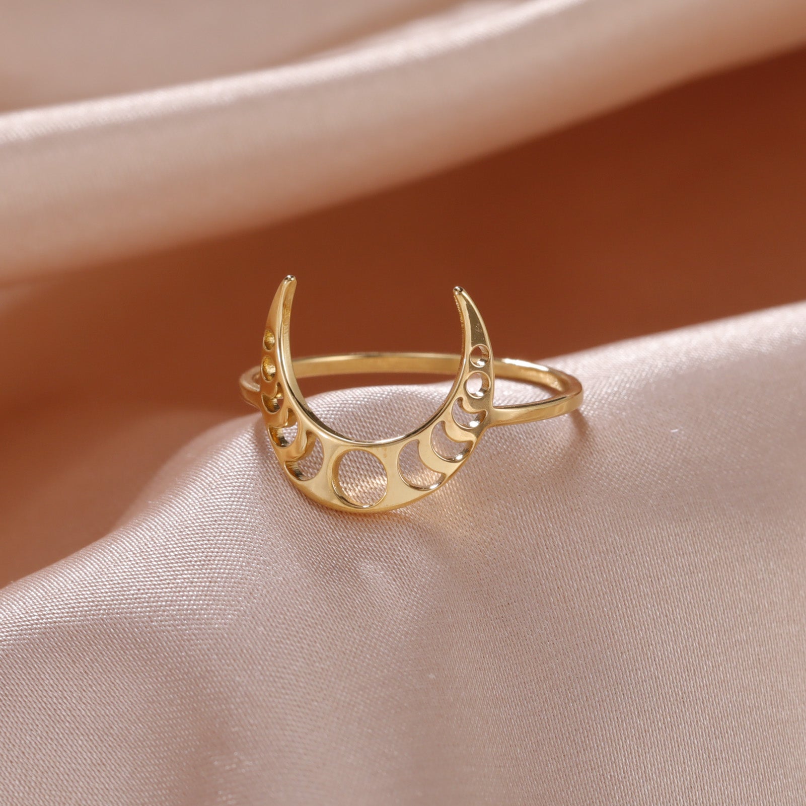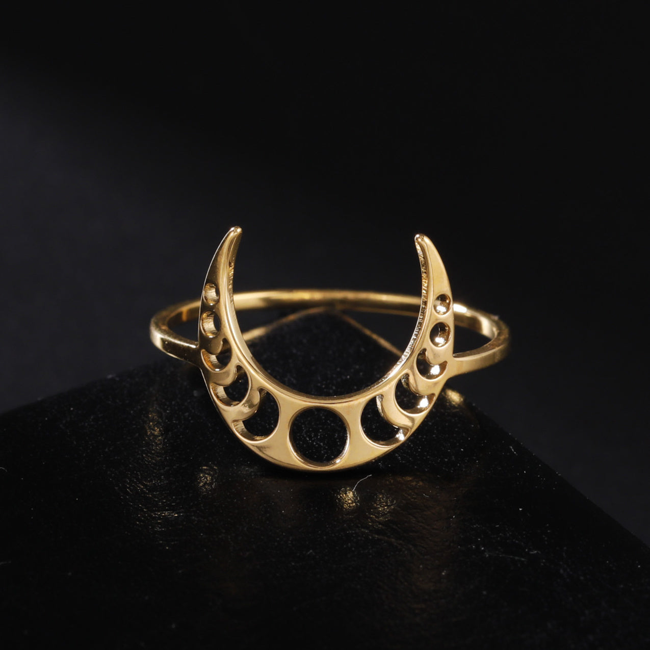 Add a touch of celestial style with this stainless steel moon phase ring. A fashionable accessory for men.