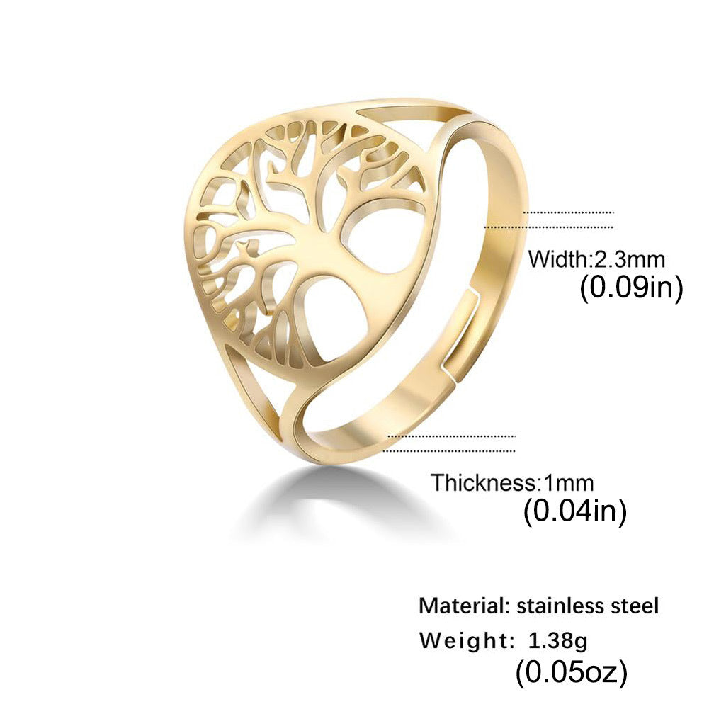 This beautiful hollow tree of life ring is made of stainless steel, featuring an adjustable design suitable for both women and men. A perfect jewelry accessory.