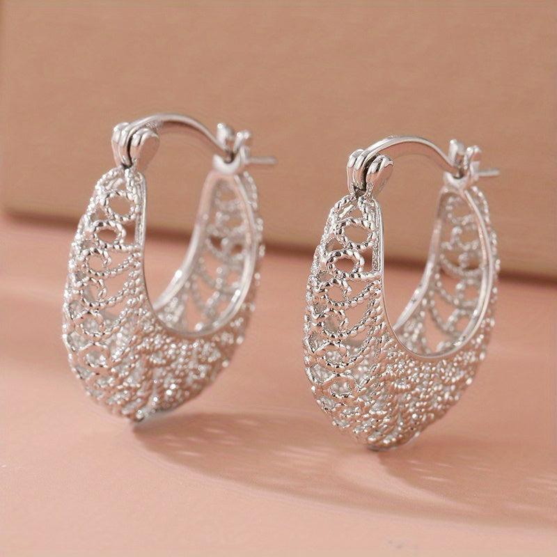 Add a touch of elegance to your outfit with these stylish hollowed out hoop earrings. Perfect for daily wear and parties.