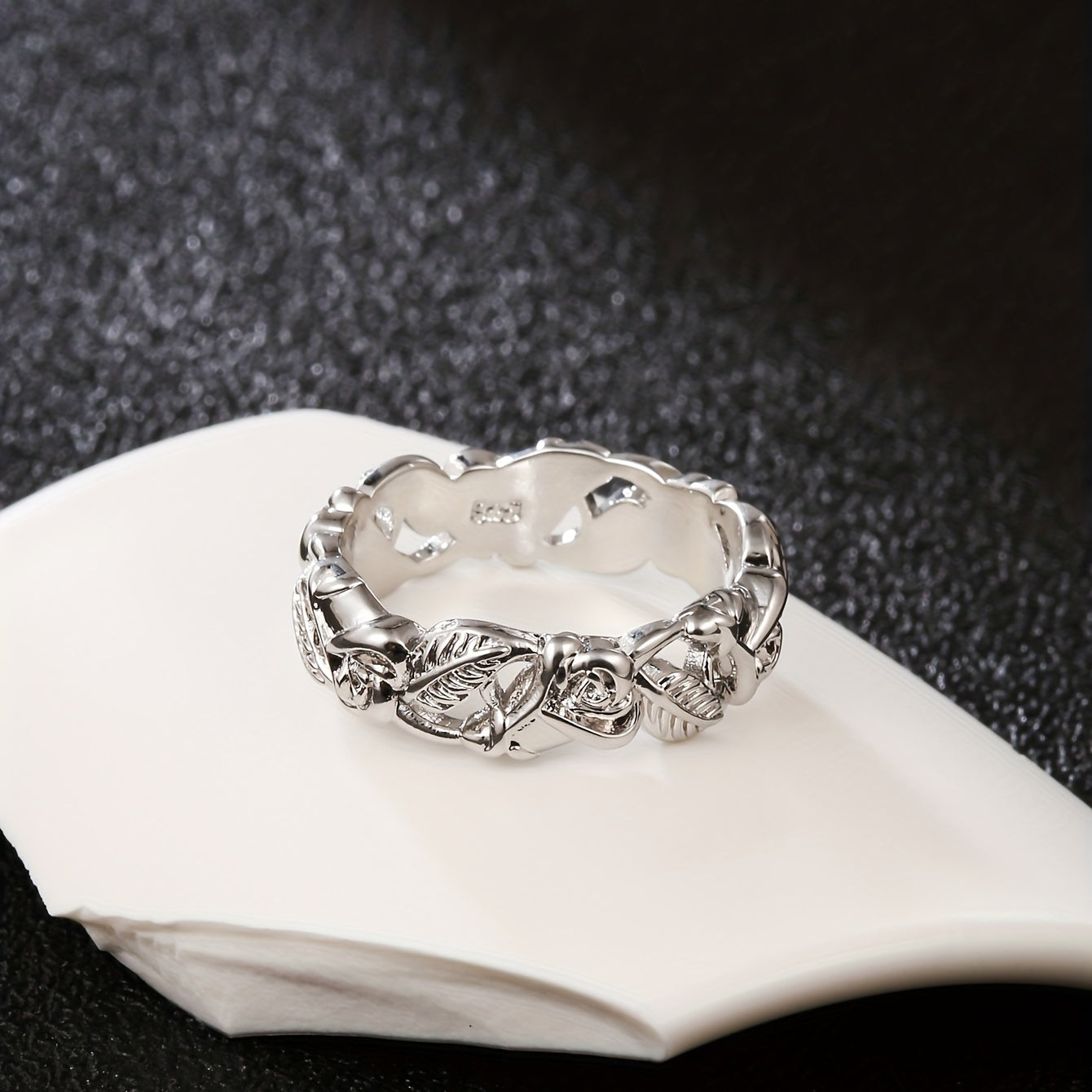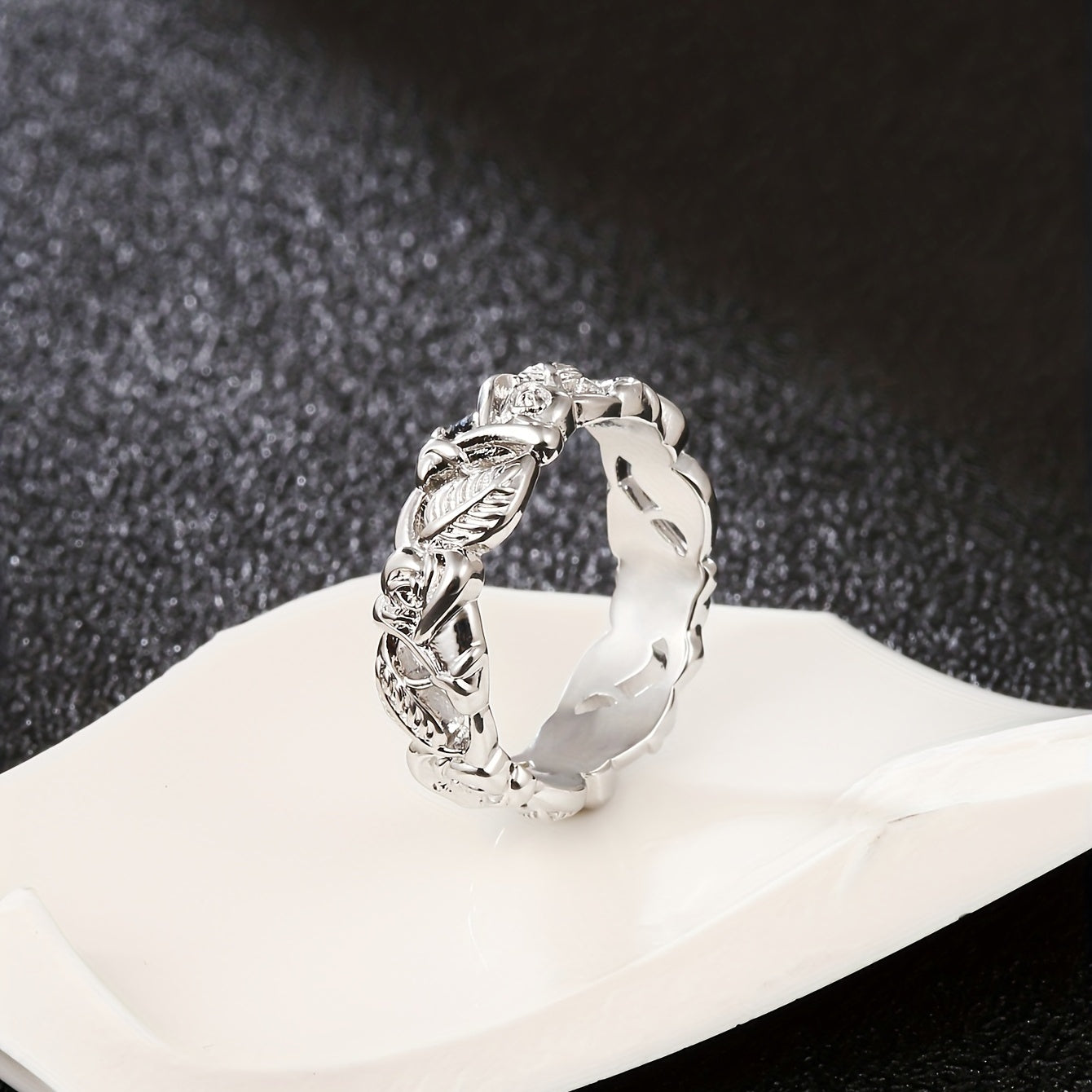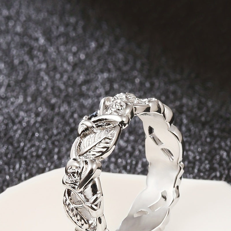 Stunning and delicate rose flower and leaf ring, perfect for adding a touch of elegance to any outfit.