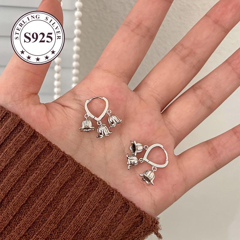 Elegant and stylish hypoallergenic lily flower earrings made for women. These golden floral ear drops are perfect for enhancing your look. A minimalist and niche high-end ear accessory that is ideal for both young women and mothers.