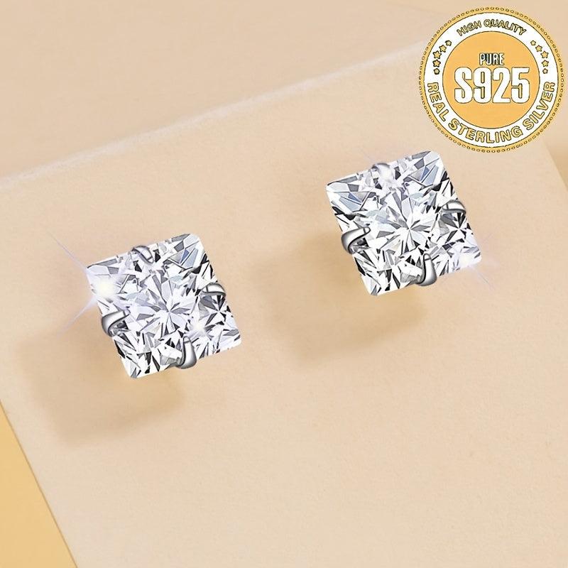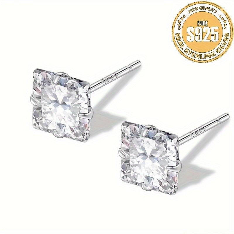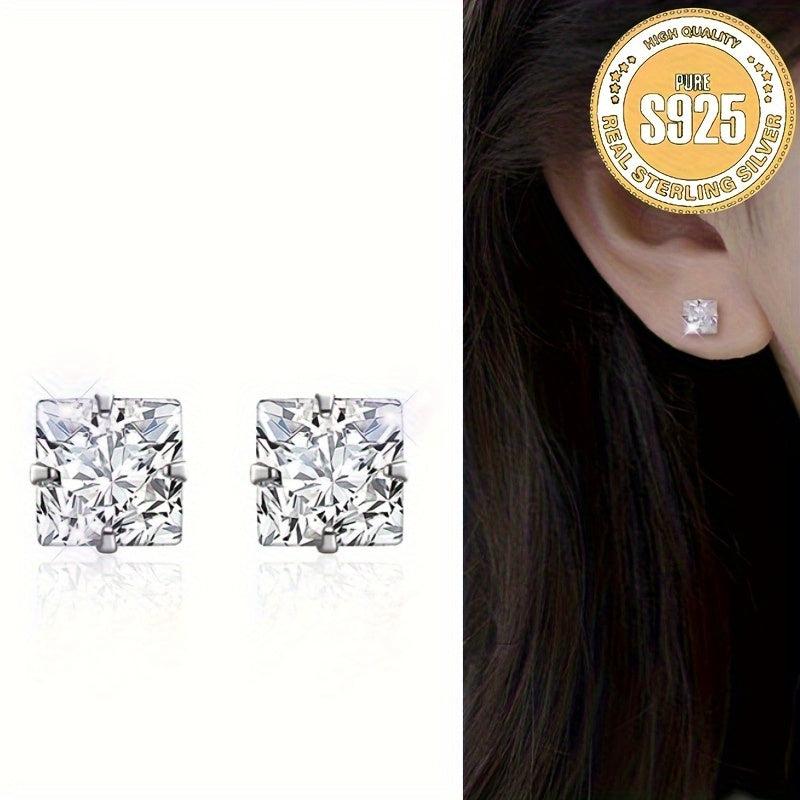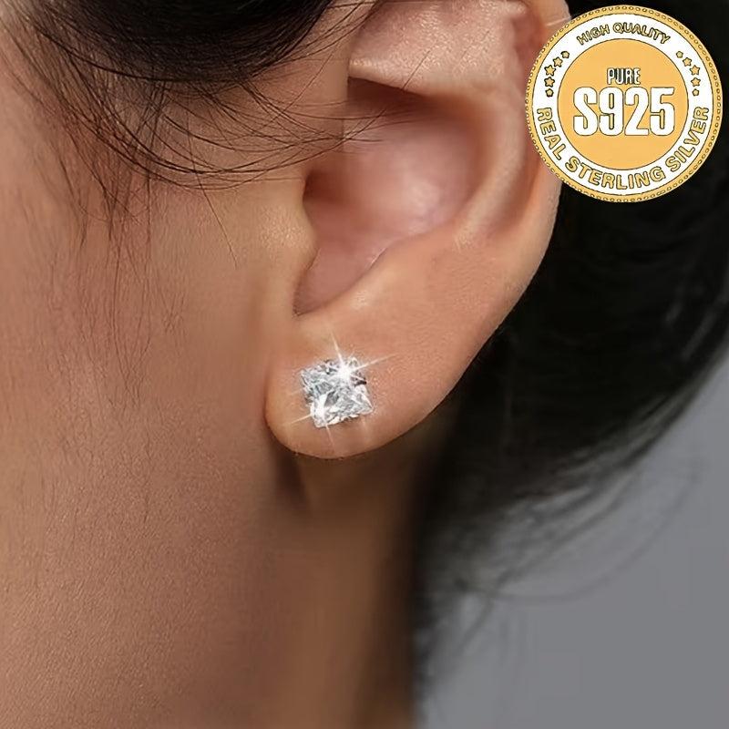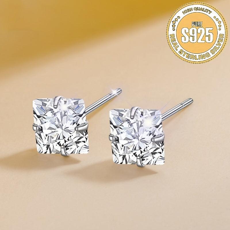 Elevate your look with this pair of stylish minimalist square stud earrings featuring synthetic zirconia. Crafted from hypoallergenic S925 silver, these earrings are both comfortable and sophisticated, perfect for women with sensitive ears.