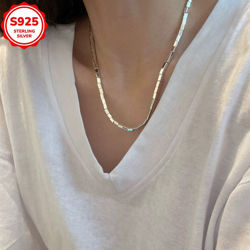 This square tube collarbone necklace is hypoallergenic and suitable for all occasions. It comes in a beautiful gift box and is anti-oxidation to maintain its quality.