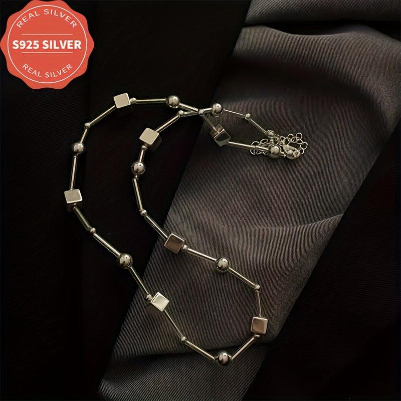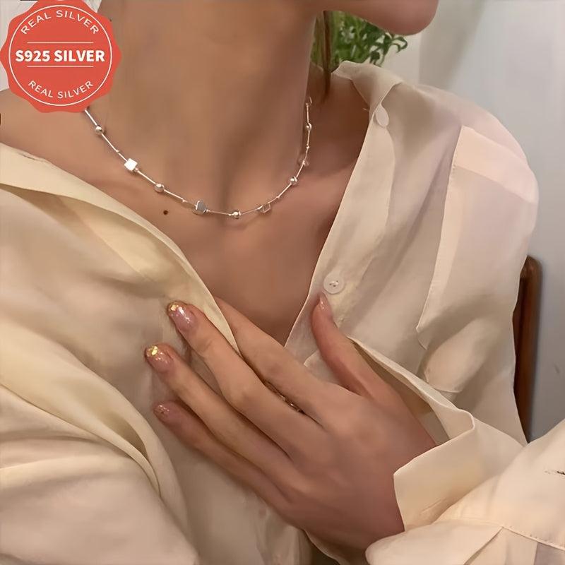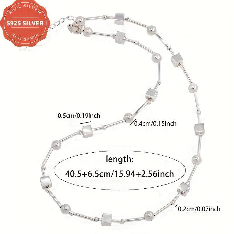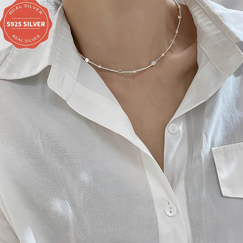 This square geometric bead necklace is a unique and sophisticated collarbone chain suitable for all occasions. It's hypoallergenic design makes it versatile and perfect for sensitive skin. A great gift for women.