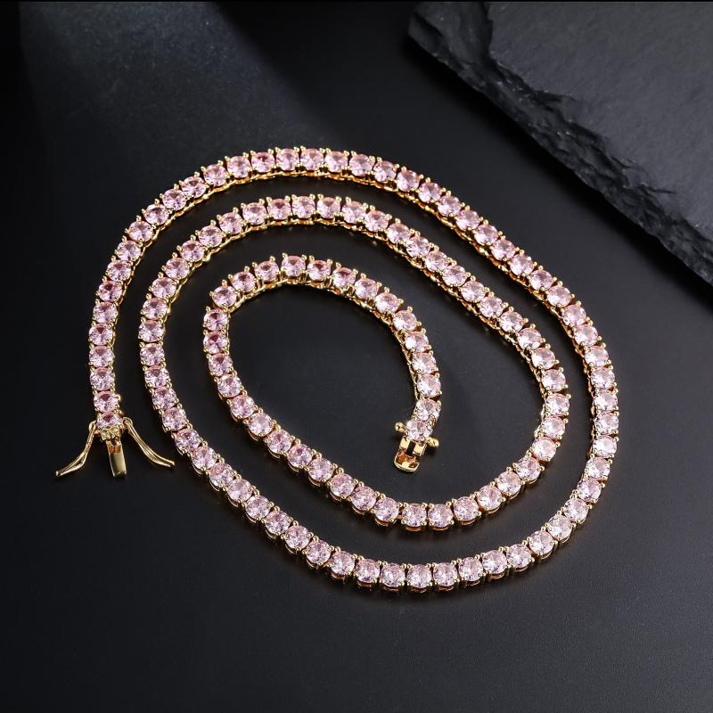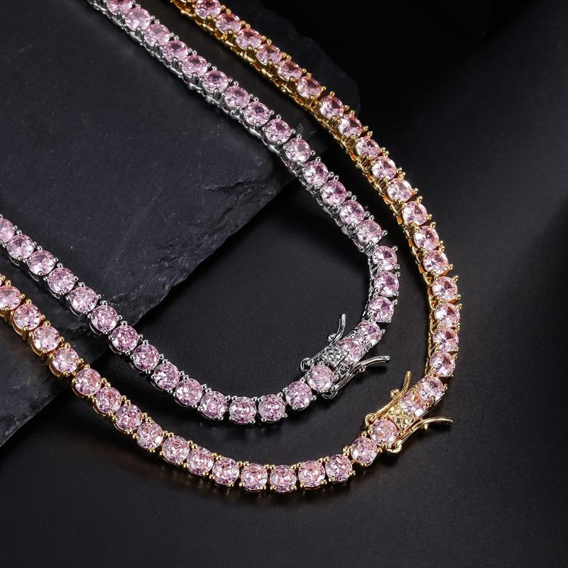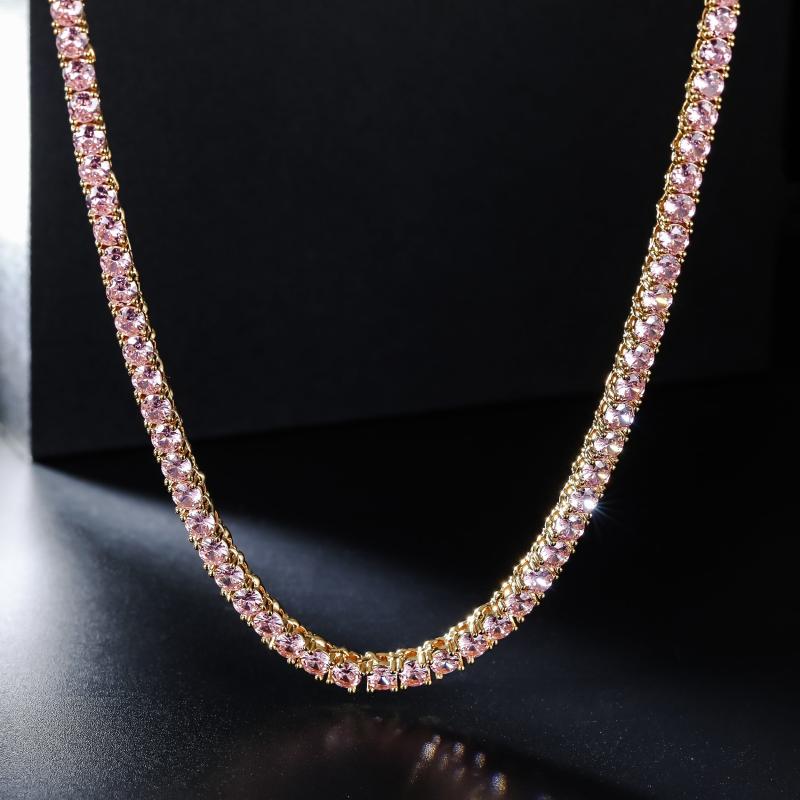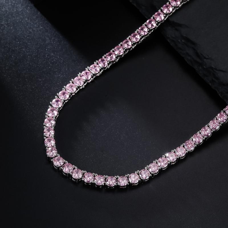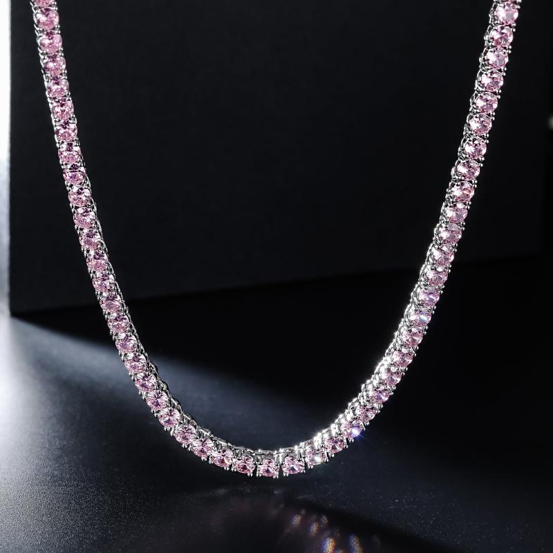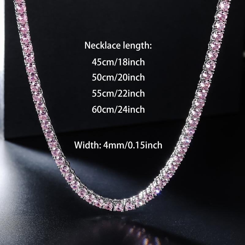 Upgrade your style with this fashionable 4mm pink tennis chain necklace featuring synthetic zirconia. Perfect gift for Valentine's, Mardi Gras, and St Patrick's Day.