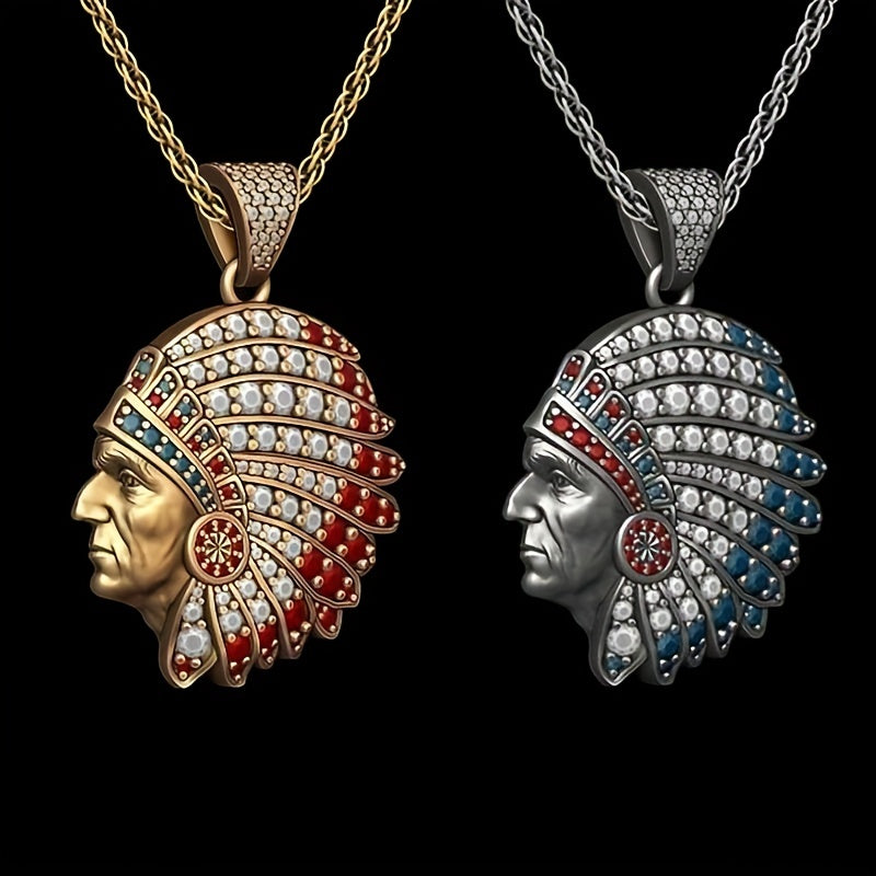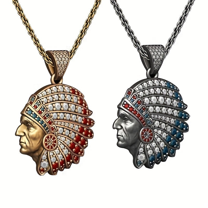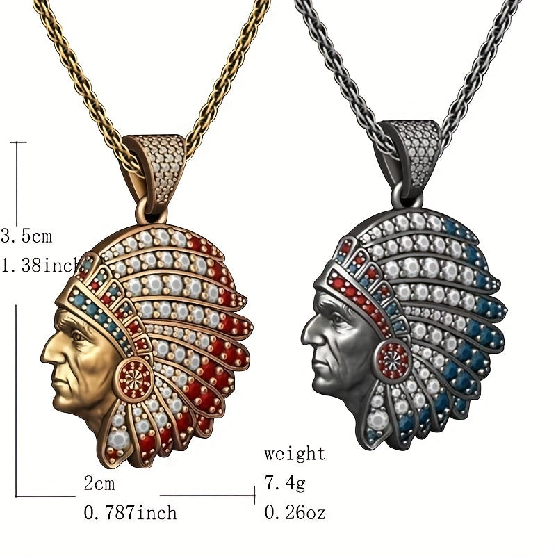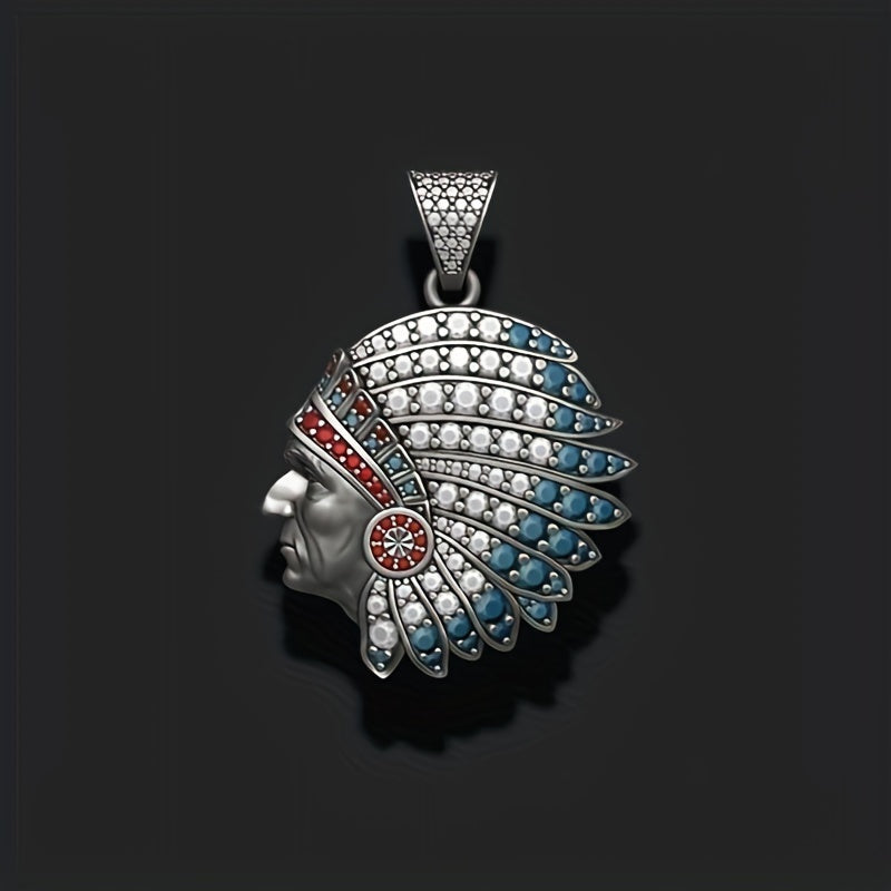 Embrace a touch of tribal elegance with this Indian Native inspired pendant necklace. Featuring a retro carved figure design with a ruby accent, this hip hop accessory is a unique and stylish memorial gift.
