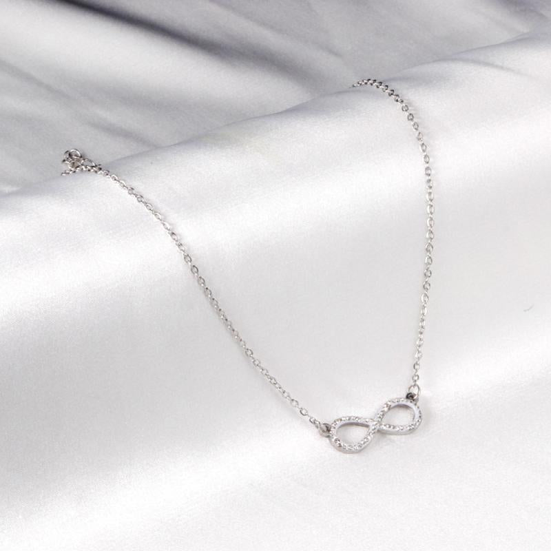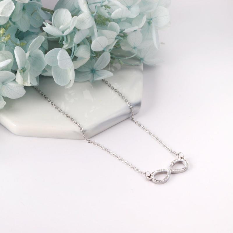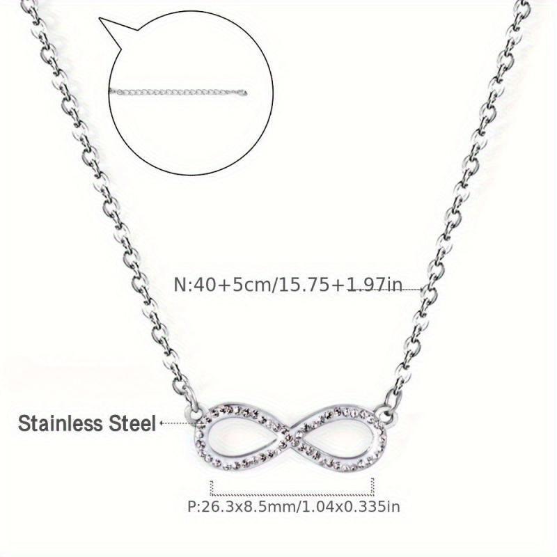 This elegant necklace features an infinity symbol pendant with a sparkling cubic zirconia bow design. Made of high-quality 316L stainless steel, it is adjustable to fit your clavicle and is perfect for parties or casual wear.