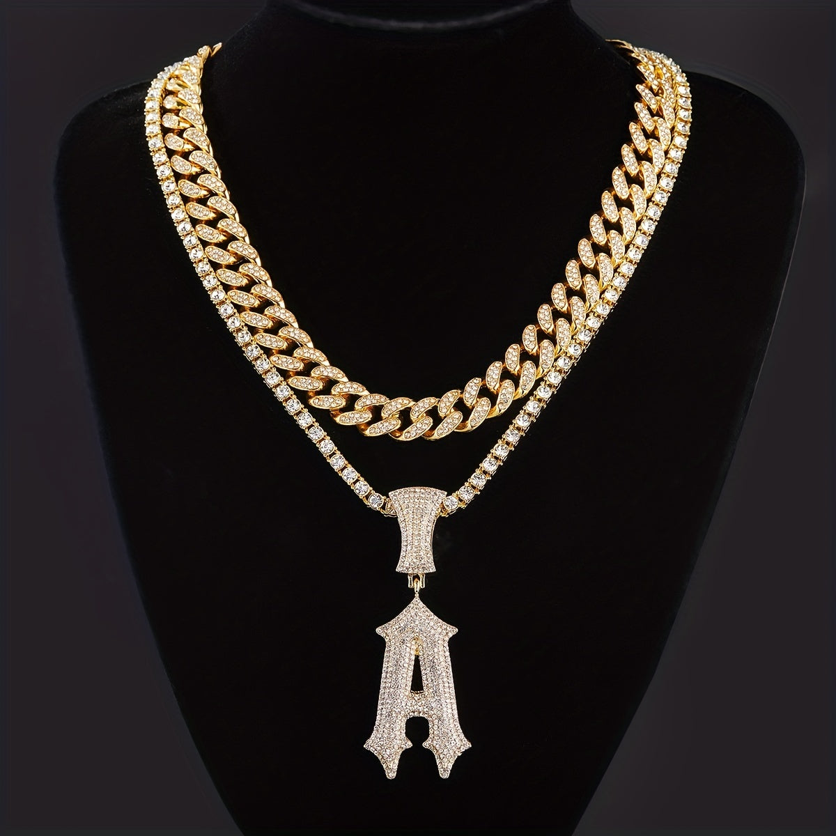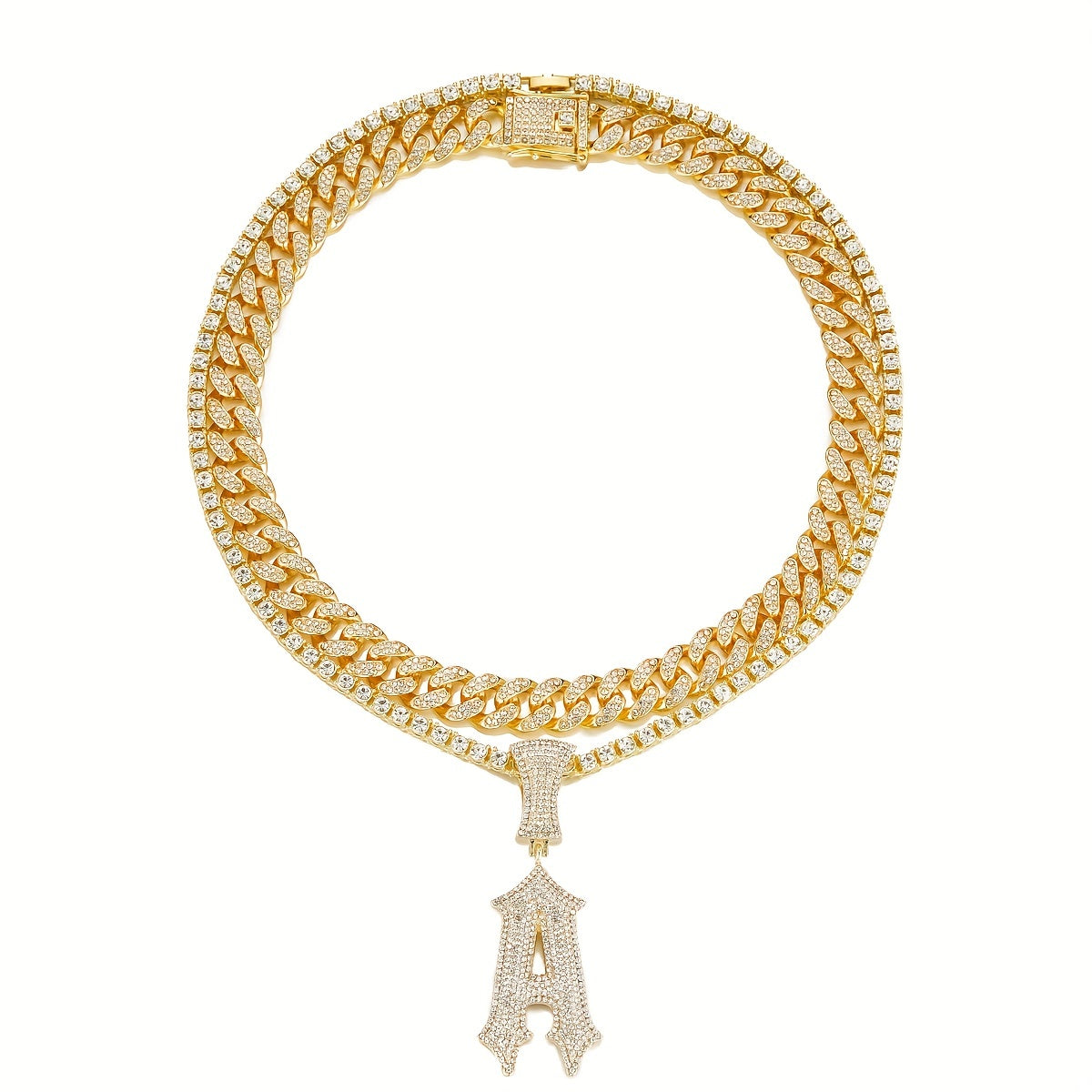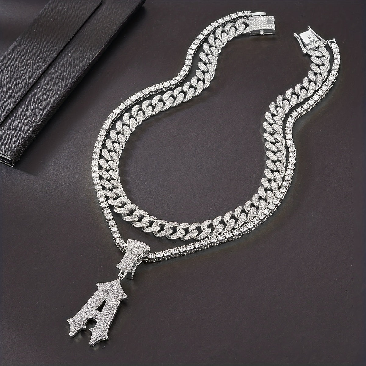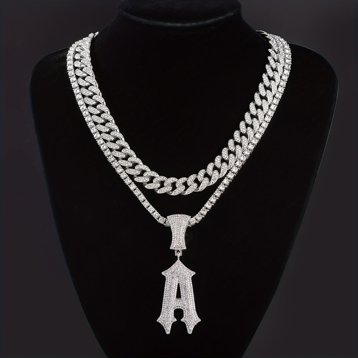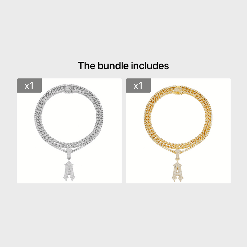 Add a touch of glamour with this stylish Initials Necklace Pendant. Plated Cuban Chains and Tennis Chains available for men and women. Perfect for parties and special occasions.
