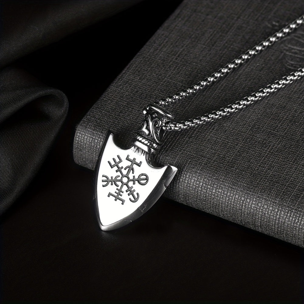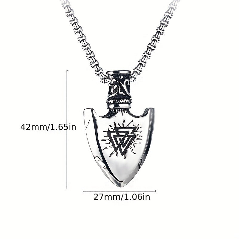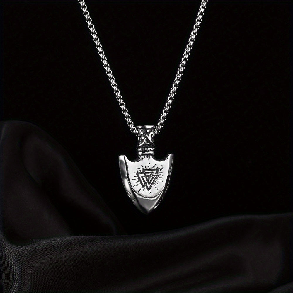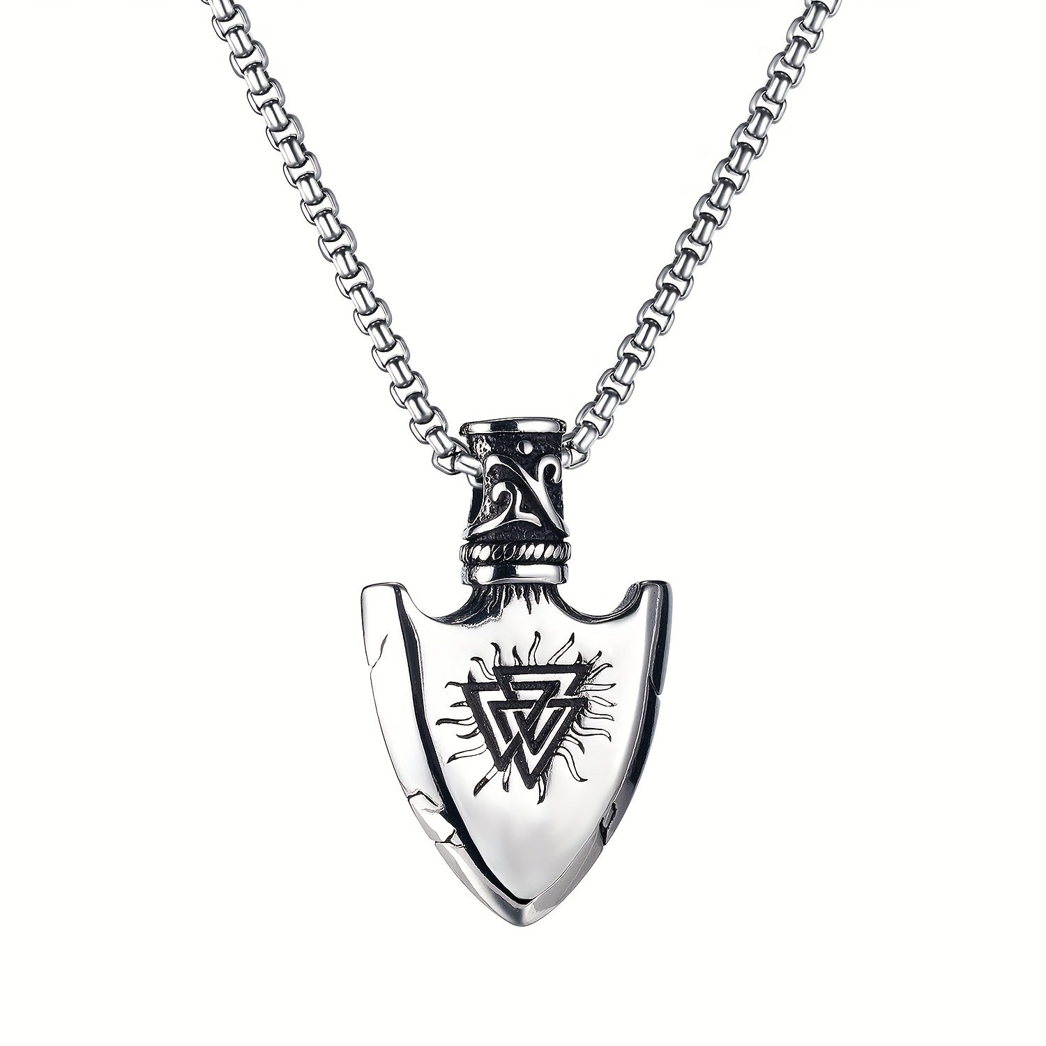 Unique Viking necklace featuring a pirate iron triangle shield pendant made of stainless steel. Ideal gift for men, couples, or women who appreciate amulet jewelry.