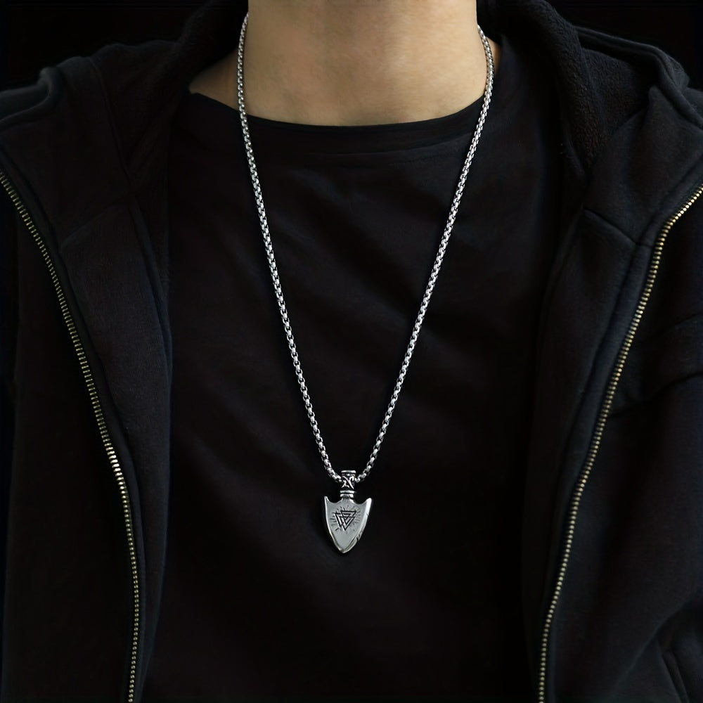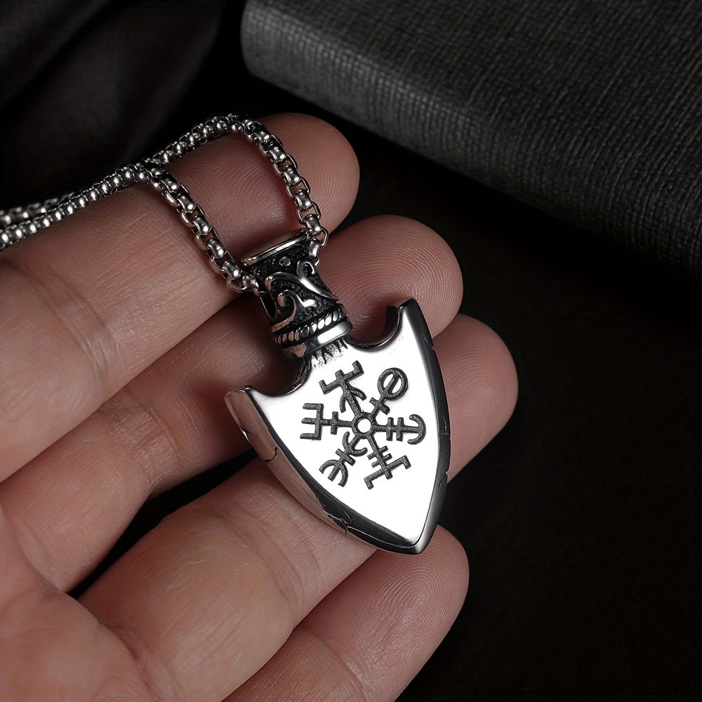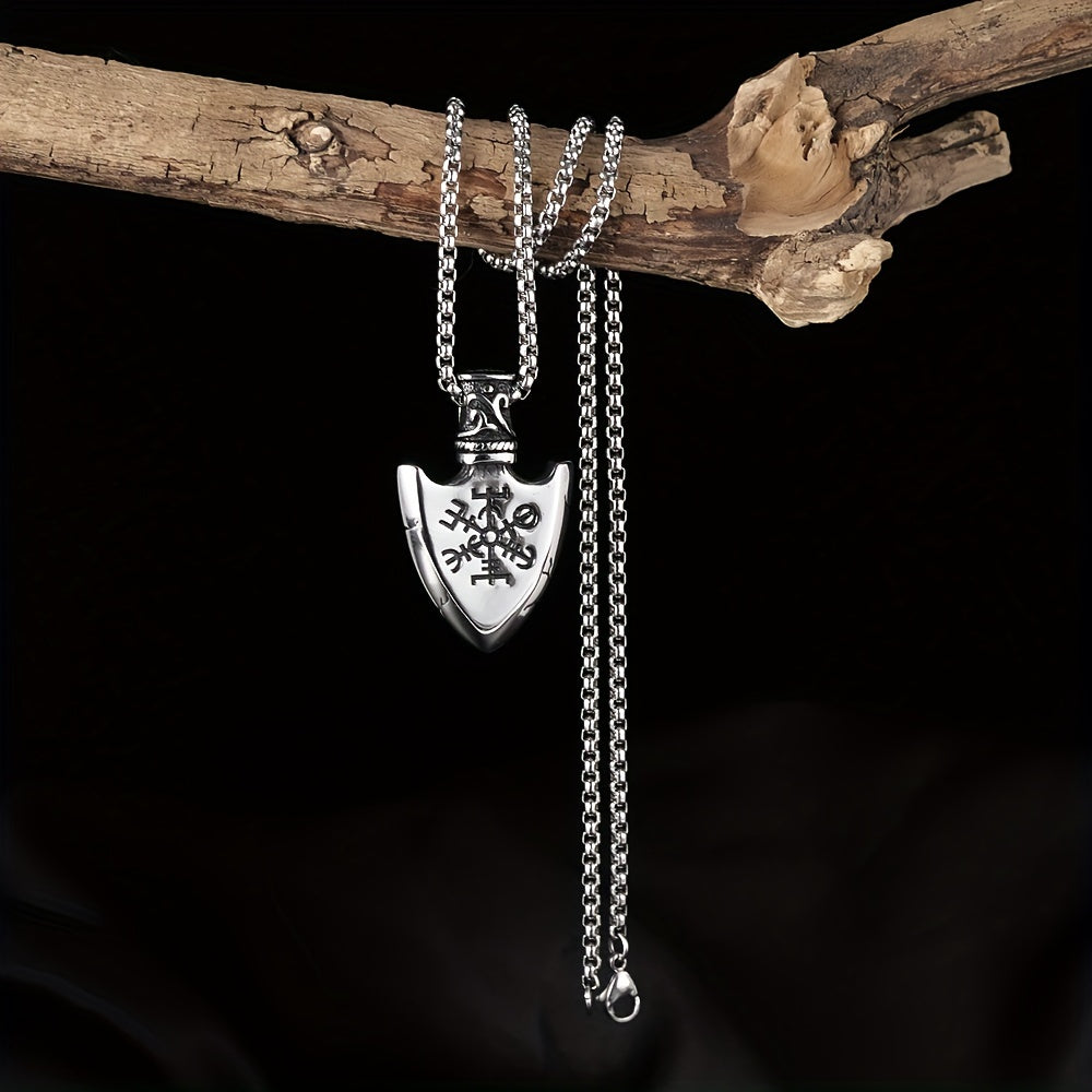 Unique Viking necklace featuring a pirate iron triangle shield pendant made of stainless steel. Ideal gift for men, couples, or women who appreciate amulet jewelry.