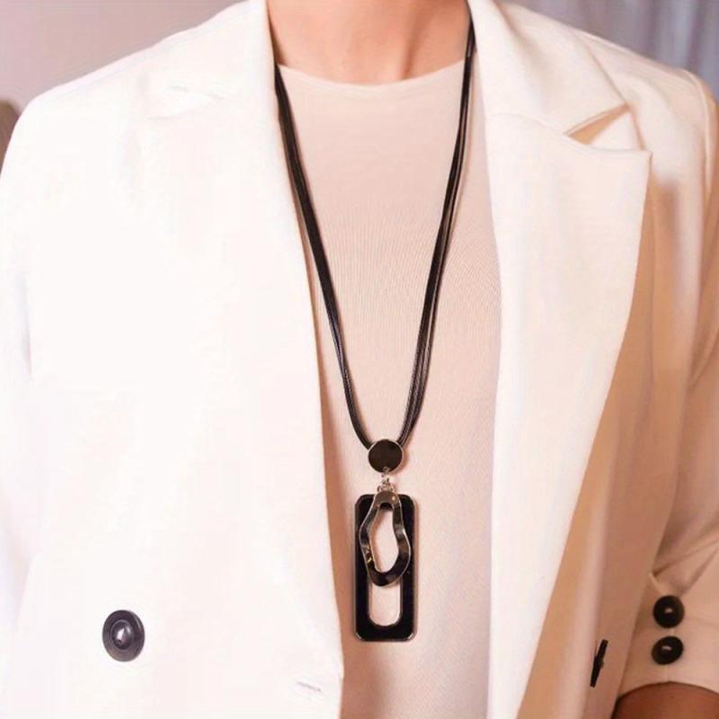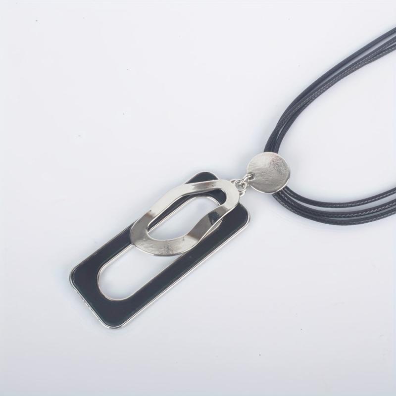 Elevate your style with this sophisticated and minimalistic necklace featuring an irregular layered pendant. Crafted from synthetic fiber rope for a chic look.