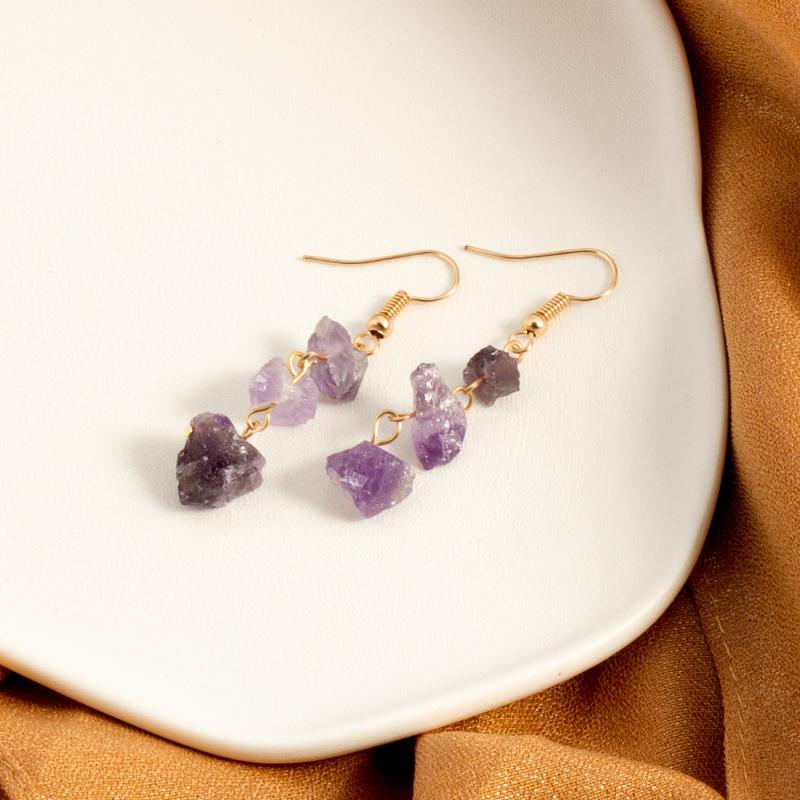 Irregular Natural Stones Women'S Earrings Hypoallergenic Copper Daily Wear