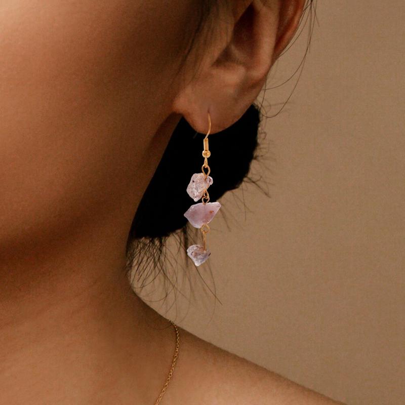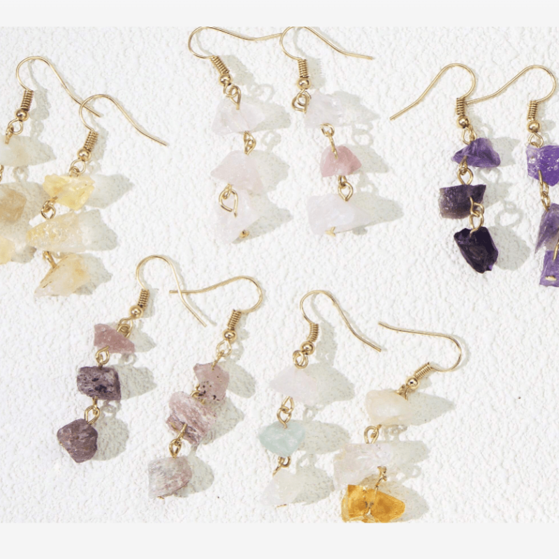 These unique earrings feature irregular natural stones on hypoallergenic copper material. Perfect for daily wear or vacation outfits. Makes a great gift for any occasion.