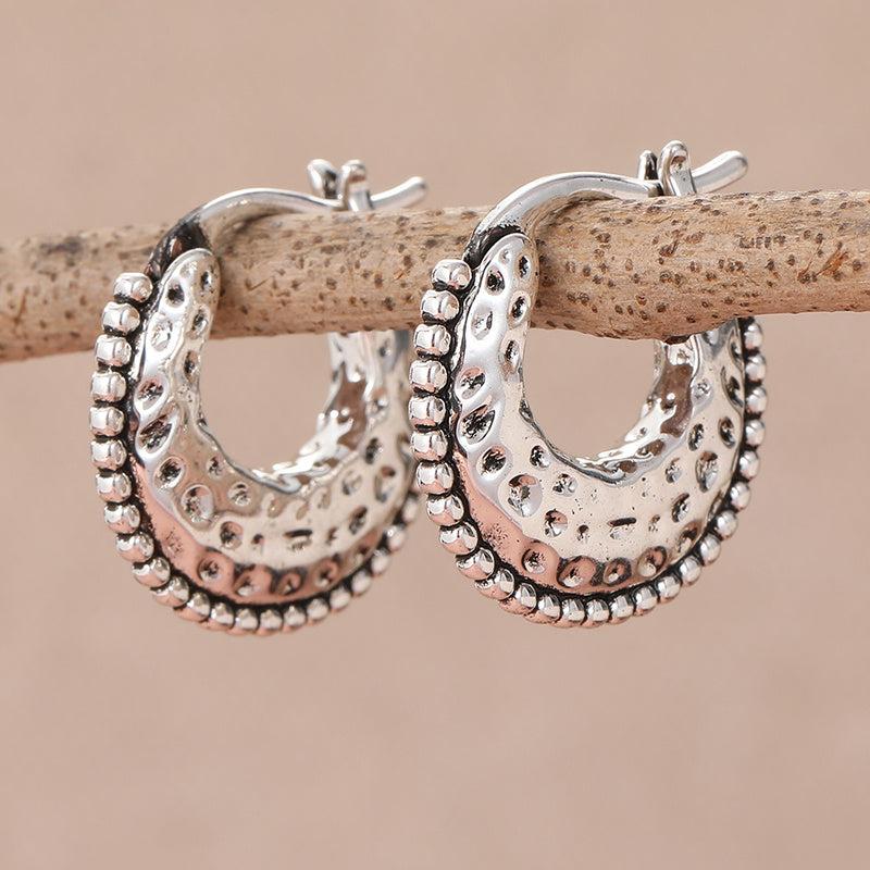 Elevate your style with these fashionable vintage niche earrings featuring an irregular texture design. These C shaped half moon earrings are the perfect accessory for any outfit.