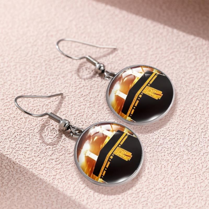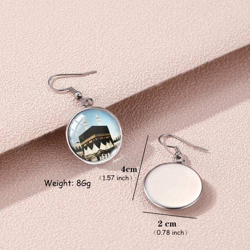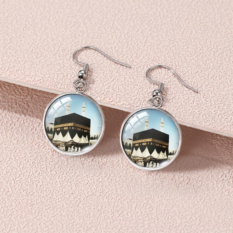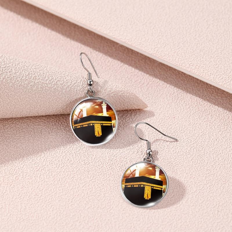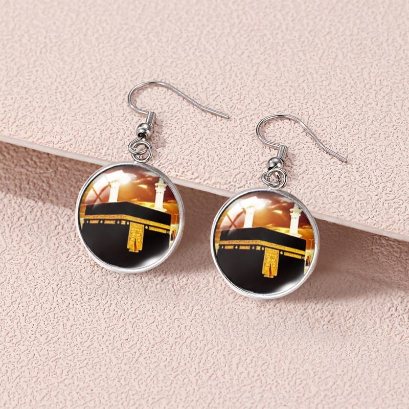 These unique alloy round earrings are inspired by the Holy City and House. They feature intricate glass inlay detailing, making them a perfect gift for cultural enthusiasts.