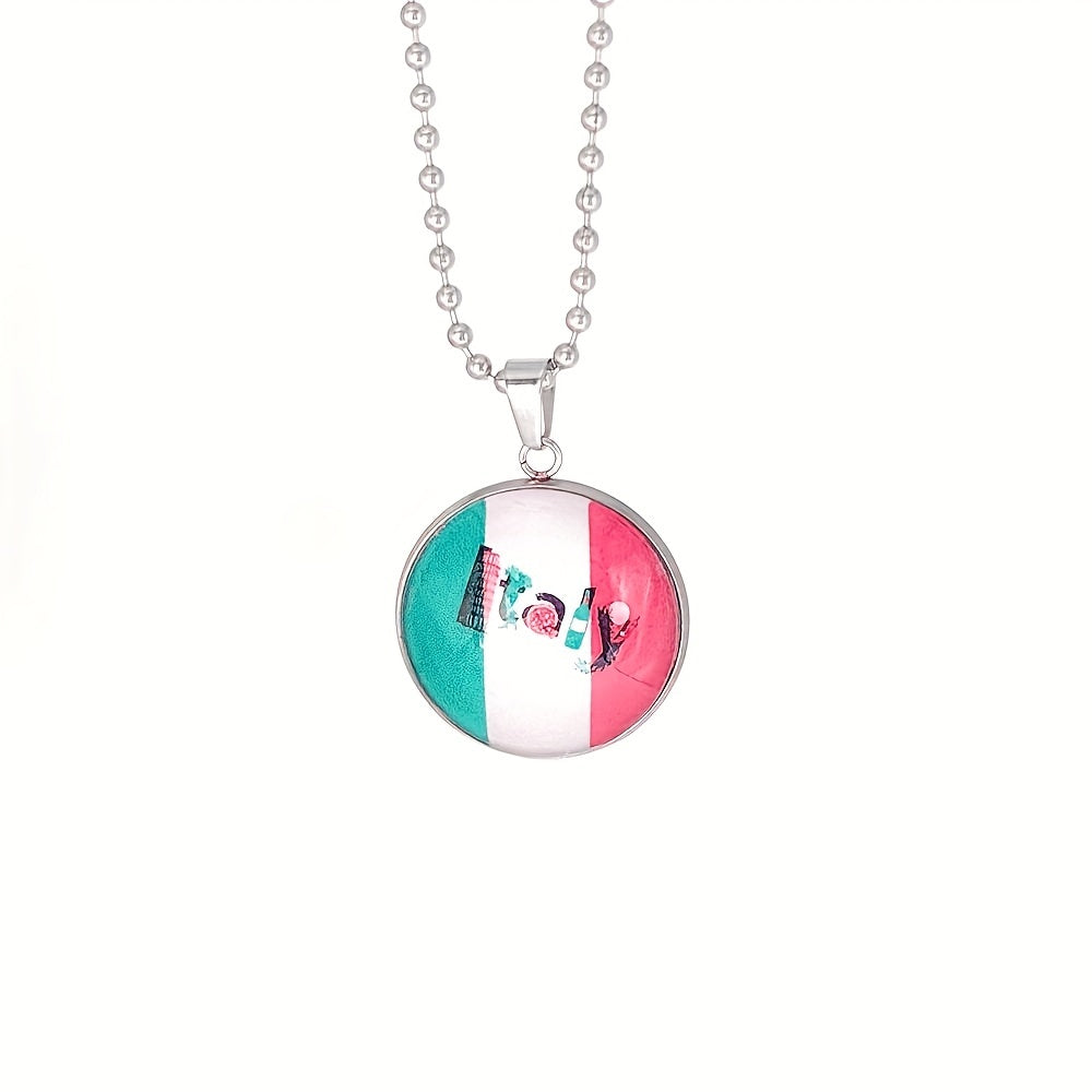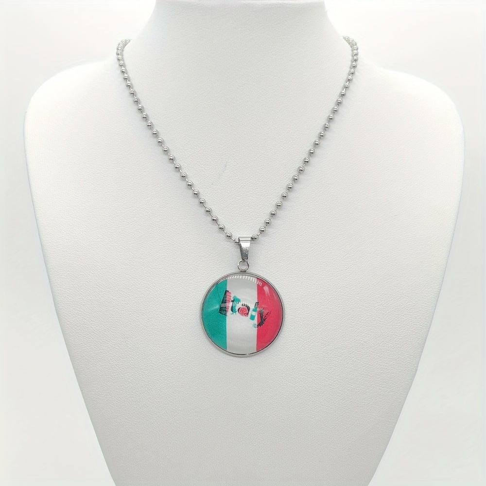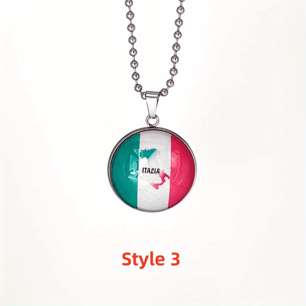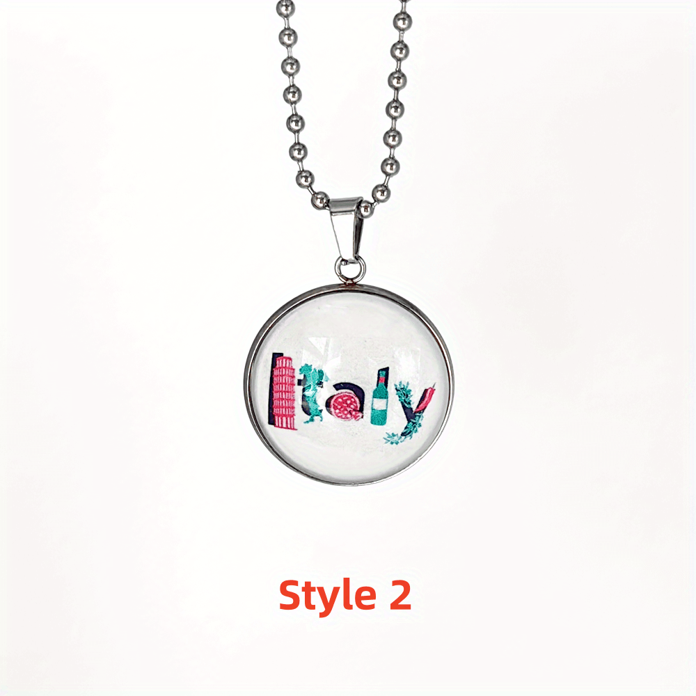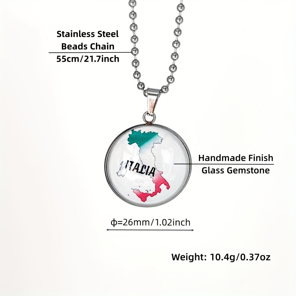 Enhance your style with this Italian style glass time gem necklace featuring a stainless steel ethnic pendant. A perfect accessory for men.
