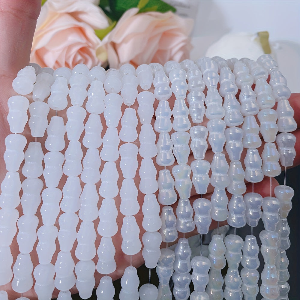 Get creative with these decorative jade gourd beads to design your own bracelets and necklaces. The set includes 56, 60, or 64 pieces of 8-14mm three-dimensional gourd-shaped beads with straight holes.