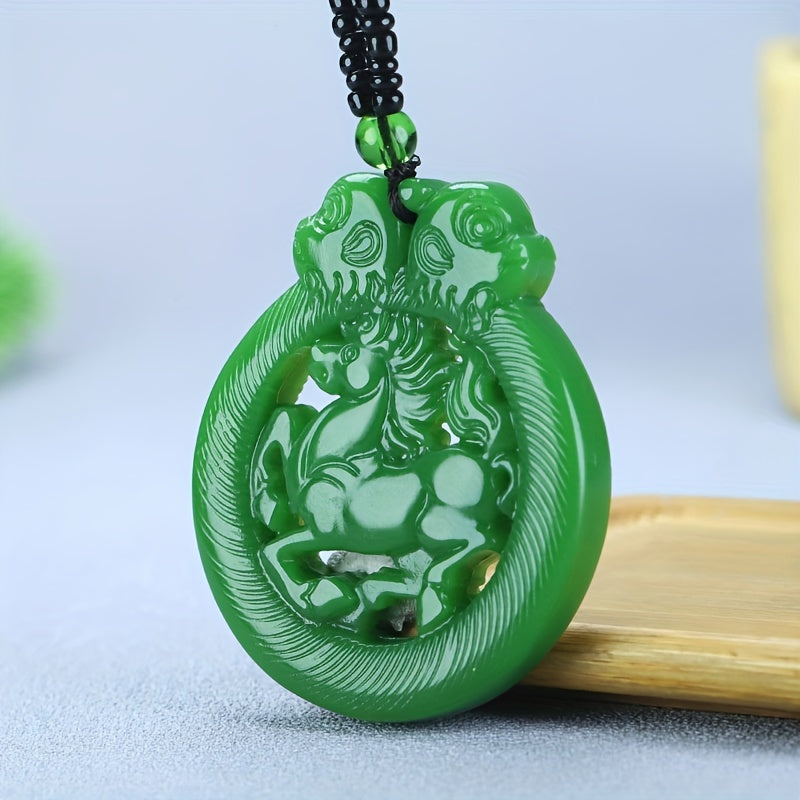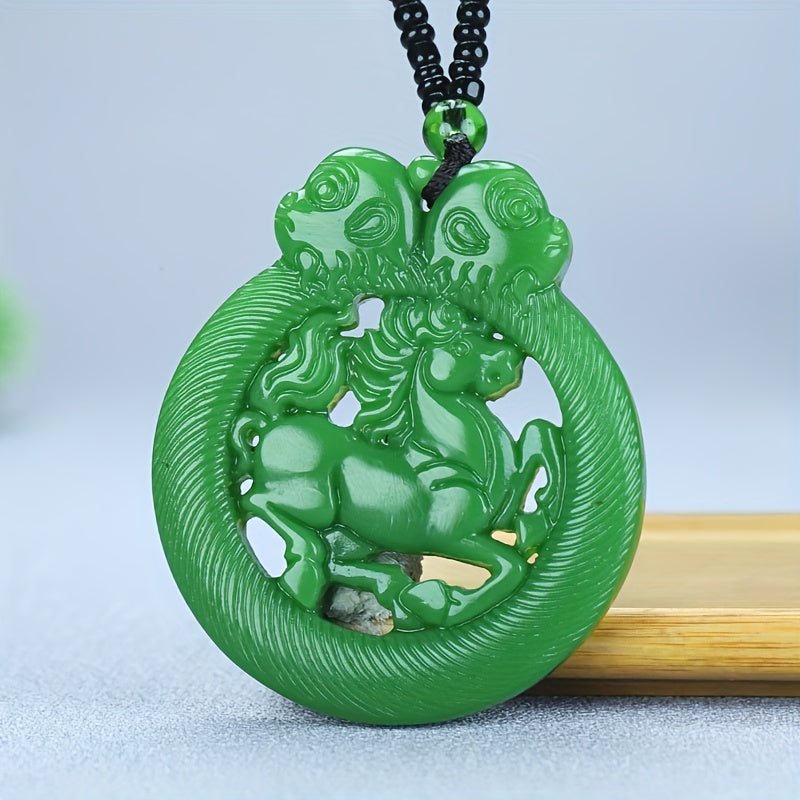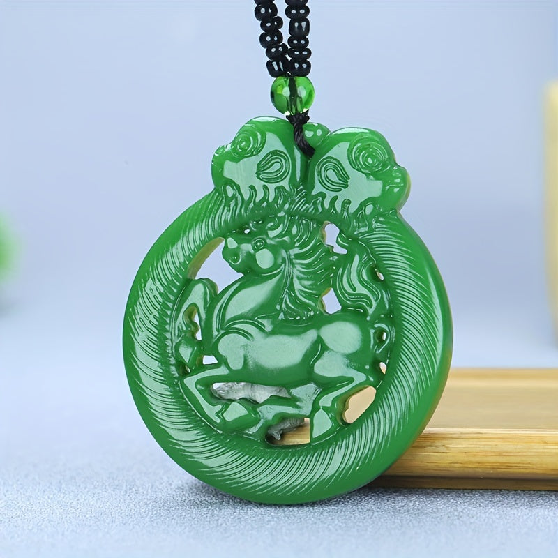 This beautiful jade stone pendant features a cutout carved design of a zodiac horse, making it a perfect gift for Thanksgiving, Christmas, birthdays, or any special occasion. Ideal for men, women, and friends.