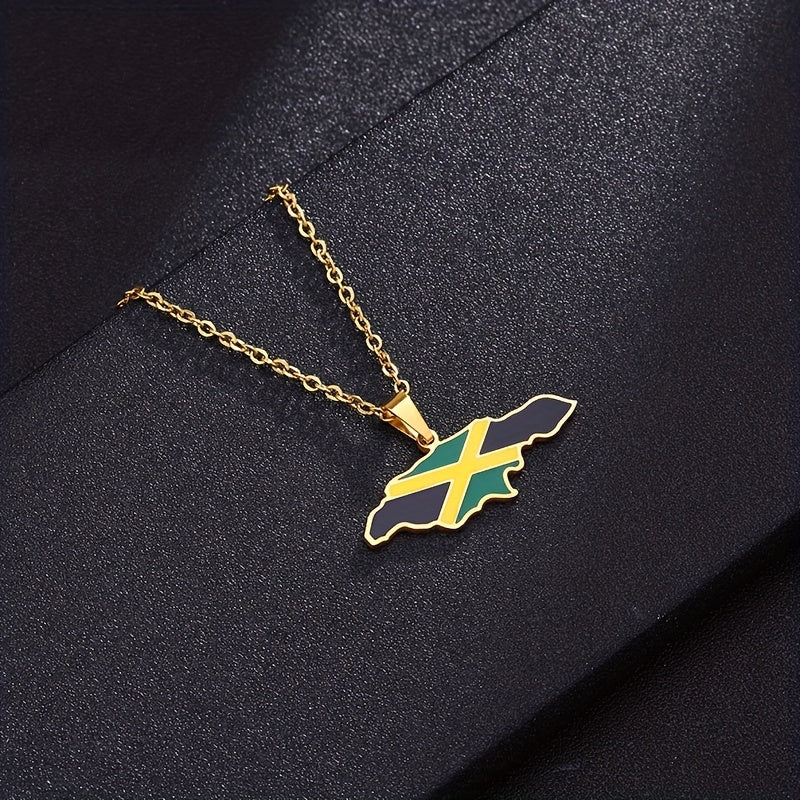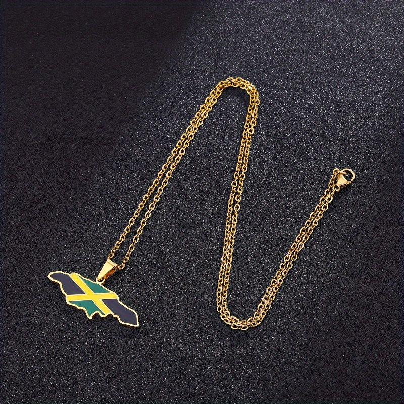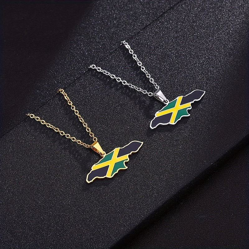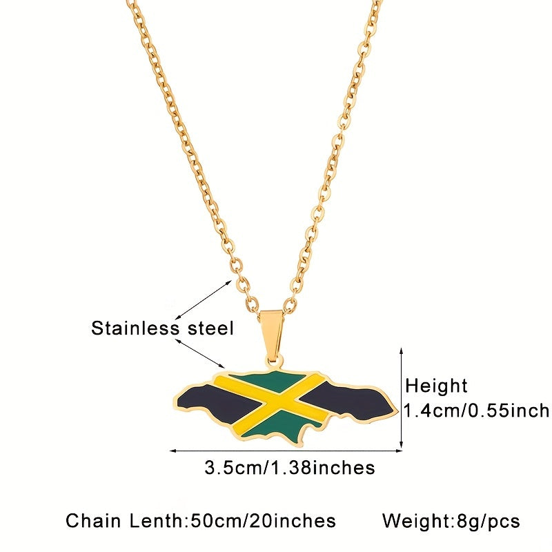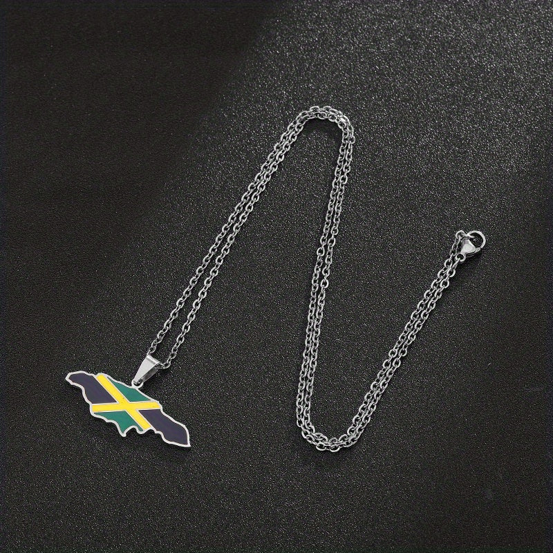 This Jamaica map flag necklace is a stylish hip hop jewelry piece suitable for men. It makes a great Christmas or birthday gift for men, women, or couples.