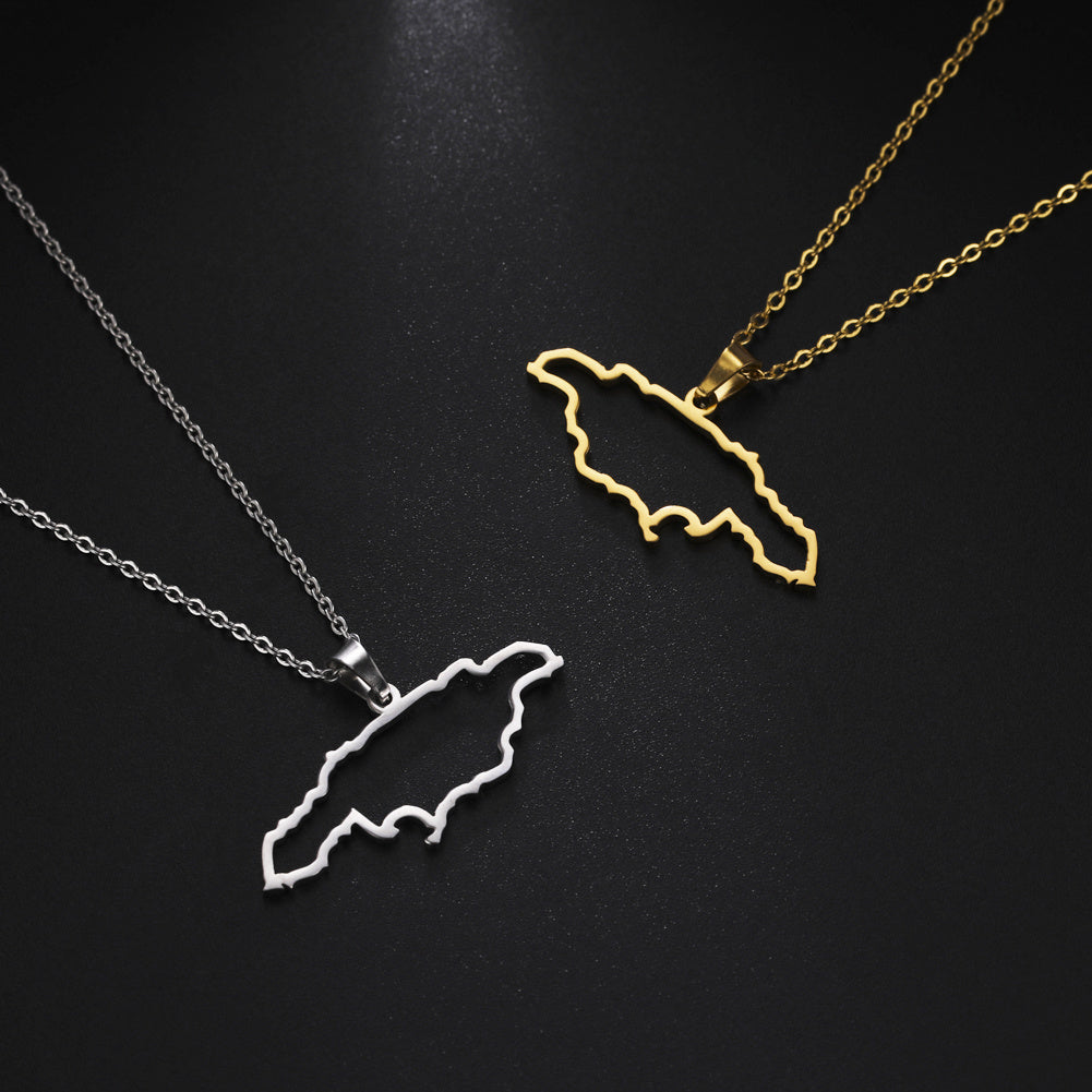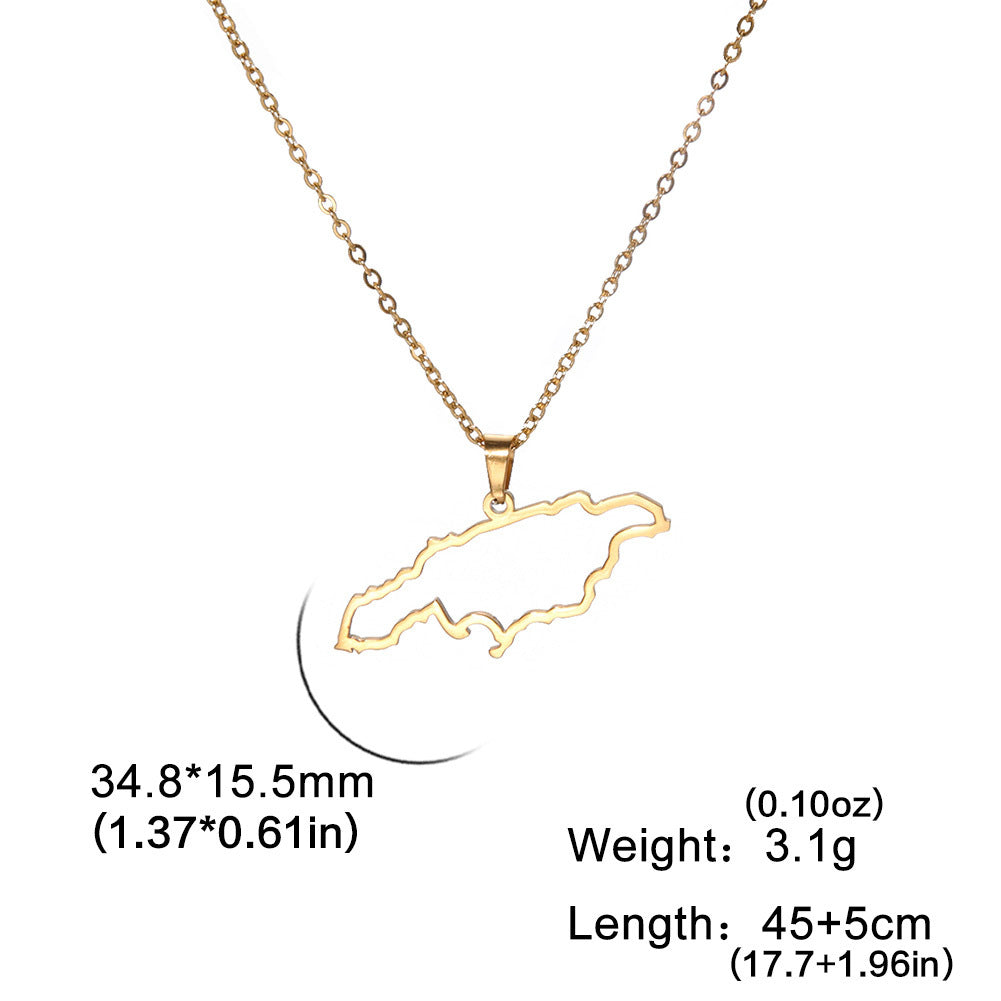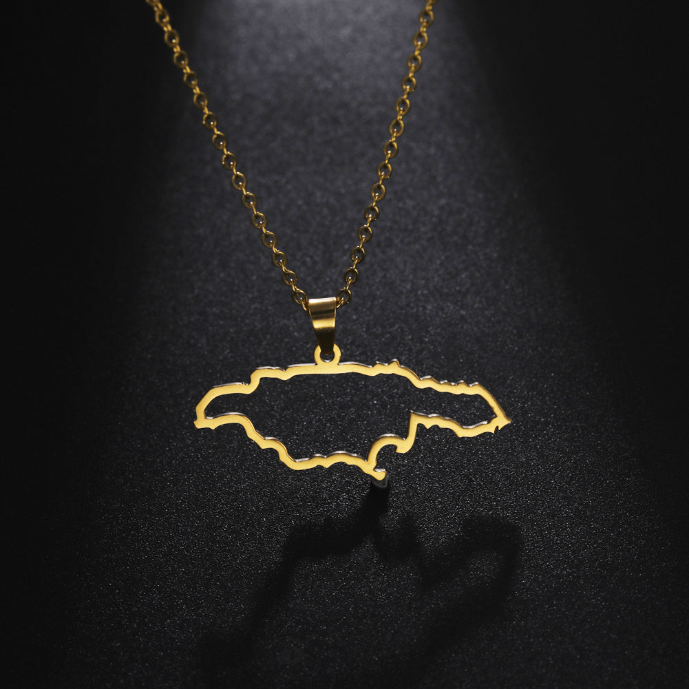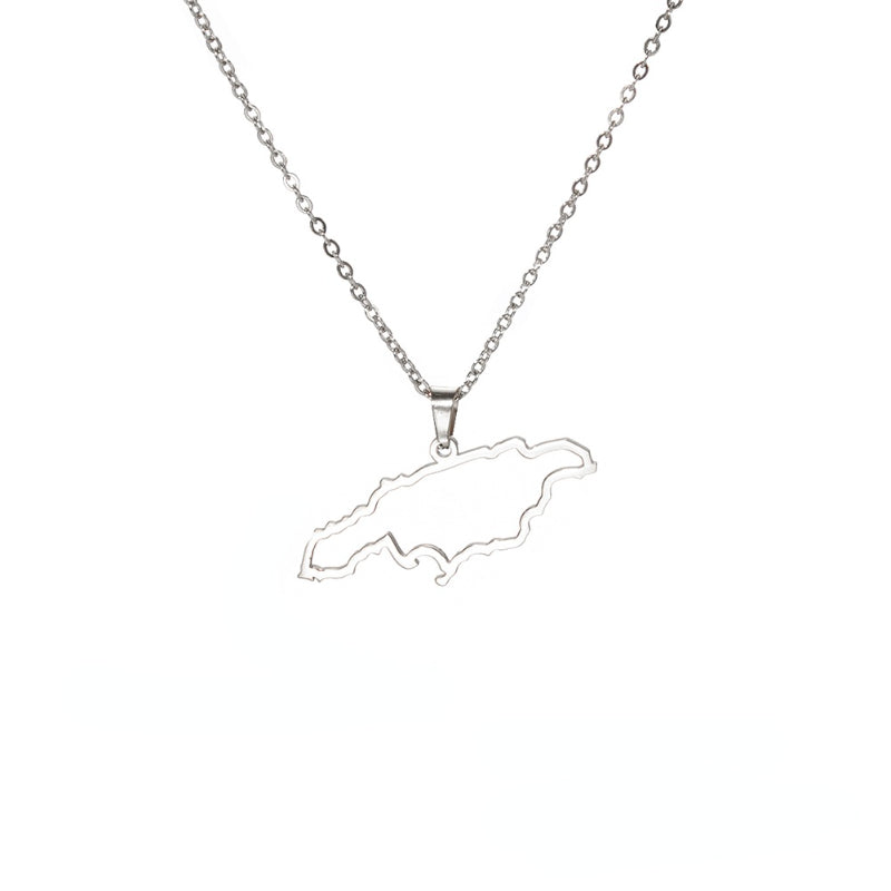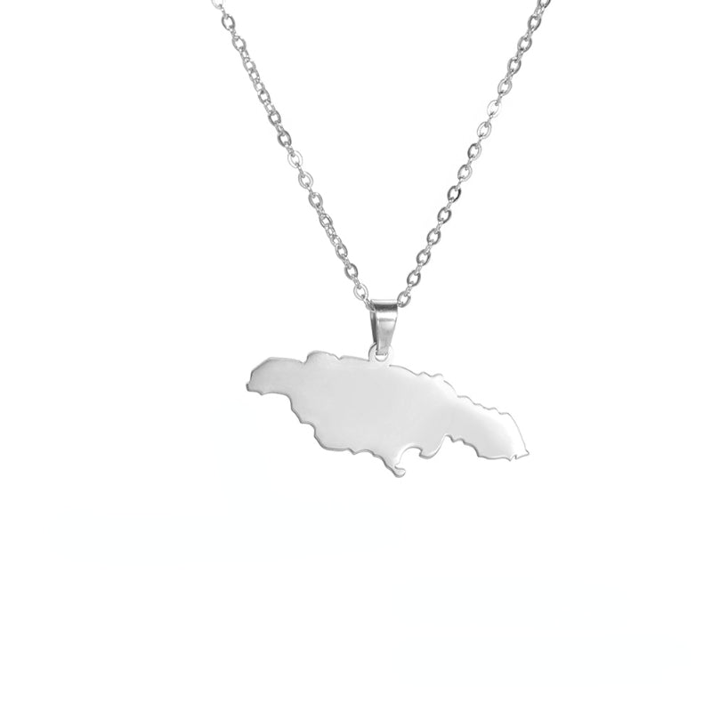 This Jamaica map pendant necklace is a stylish and trendy accessory for both men and women. Made of high-quality stainless steel, this necklace is durable and long-lasting. It makes a great gift for anyone who loves Jamaica or has a connection to the country.