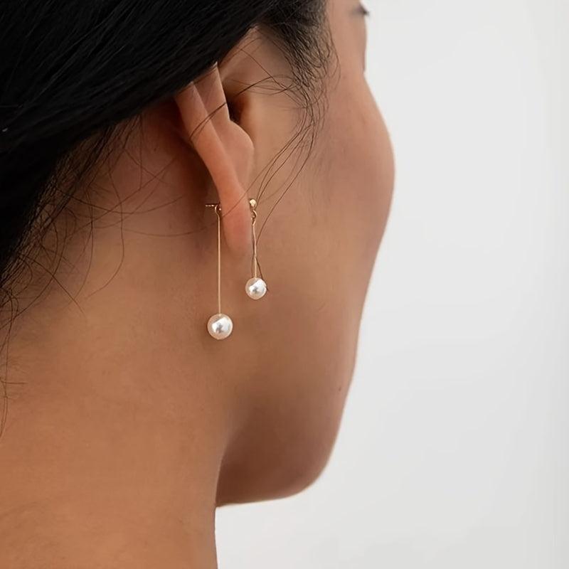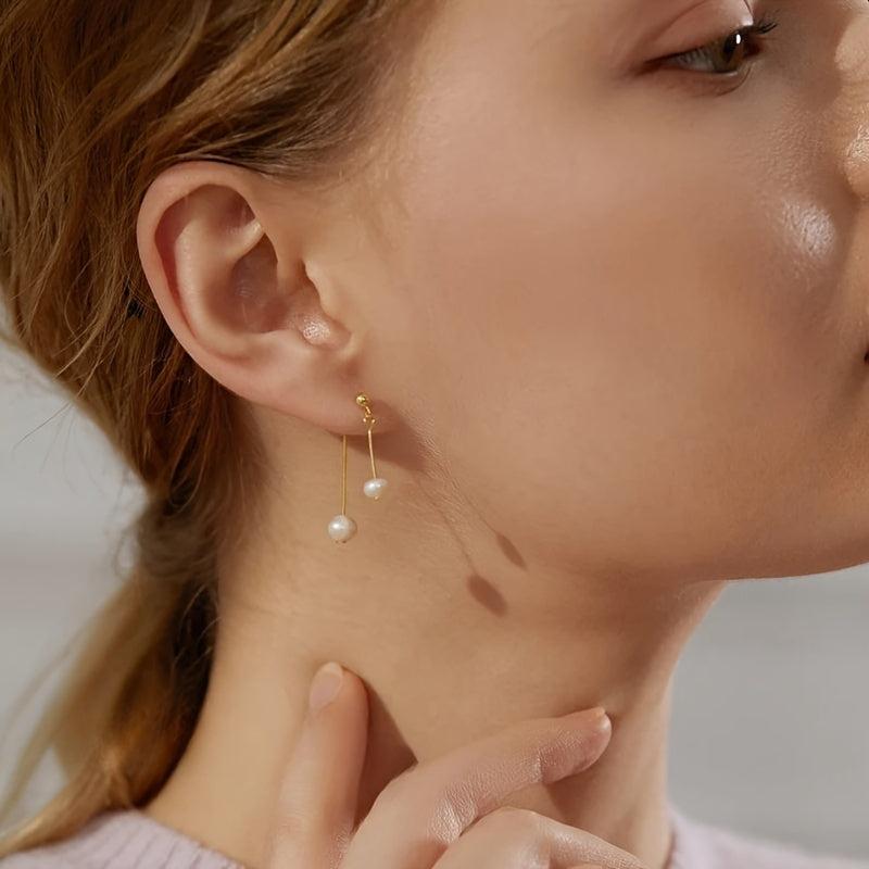 Elegant and versatile pearl stud earrings that add a touch of sophistication to any outfit.