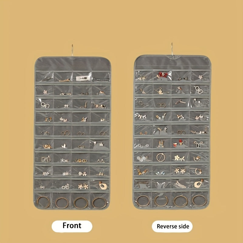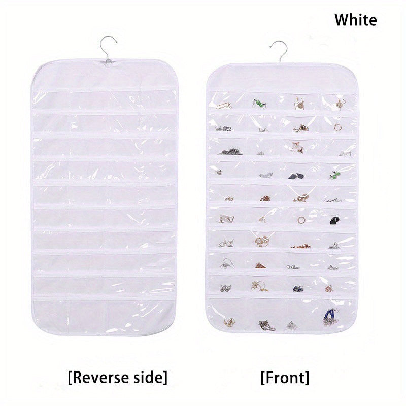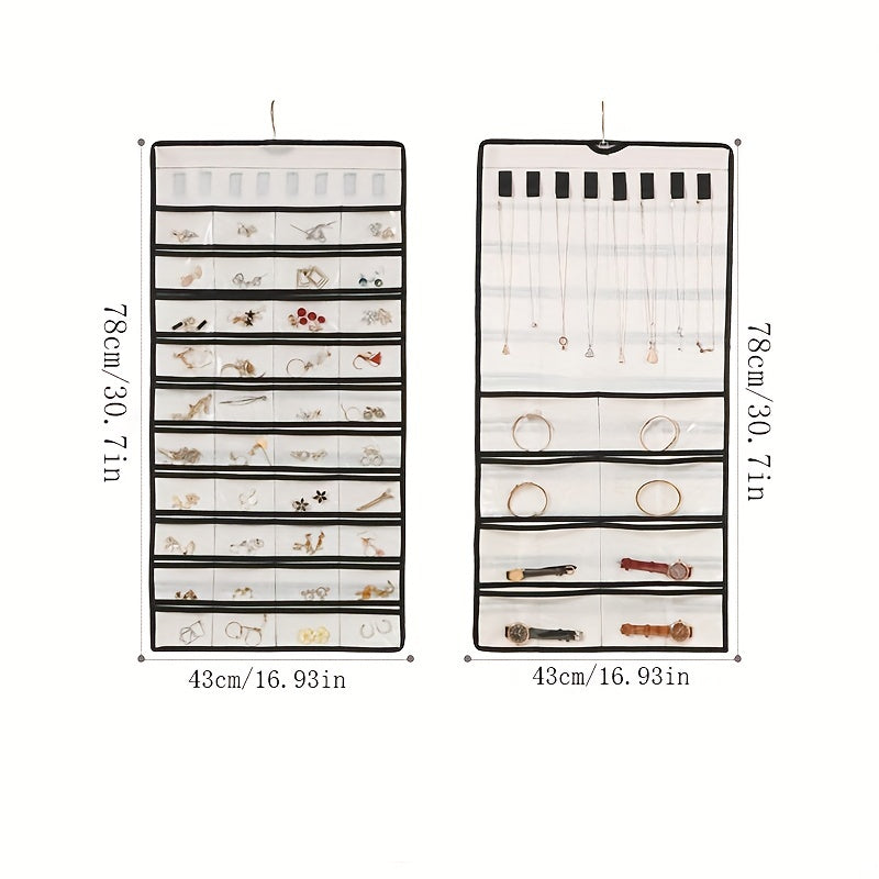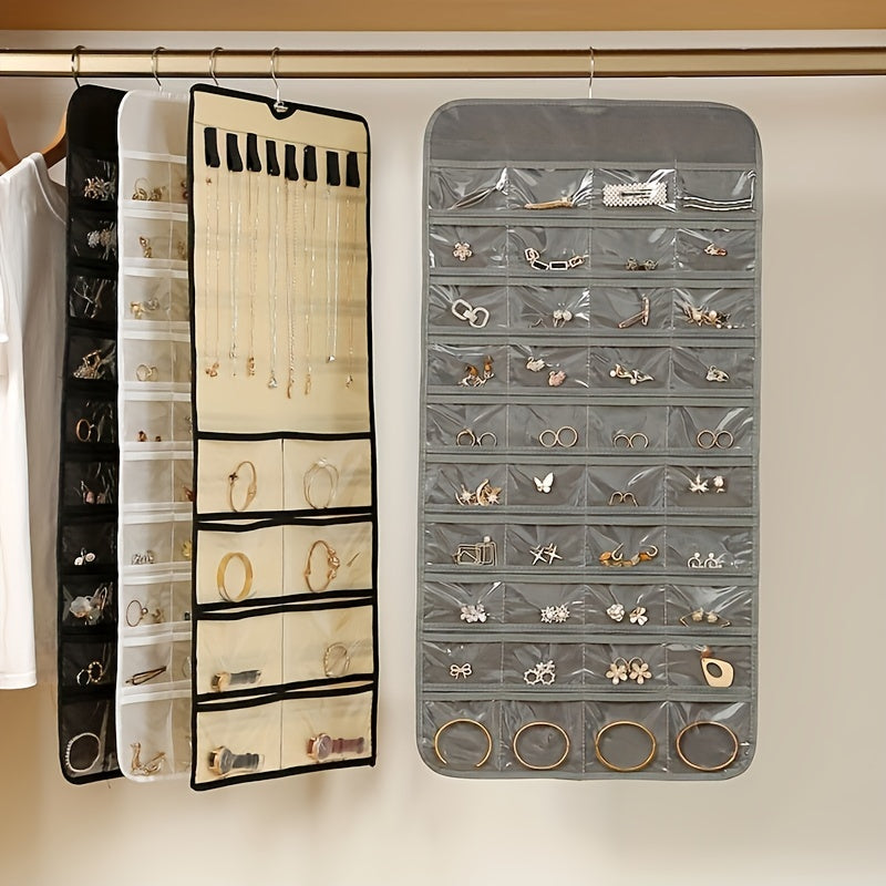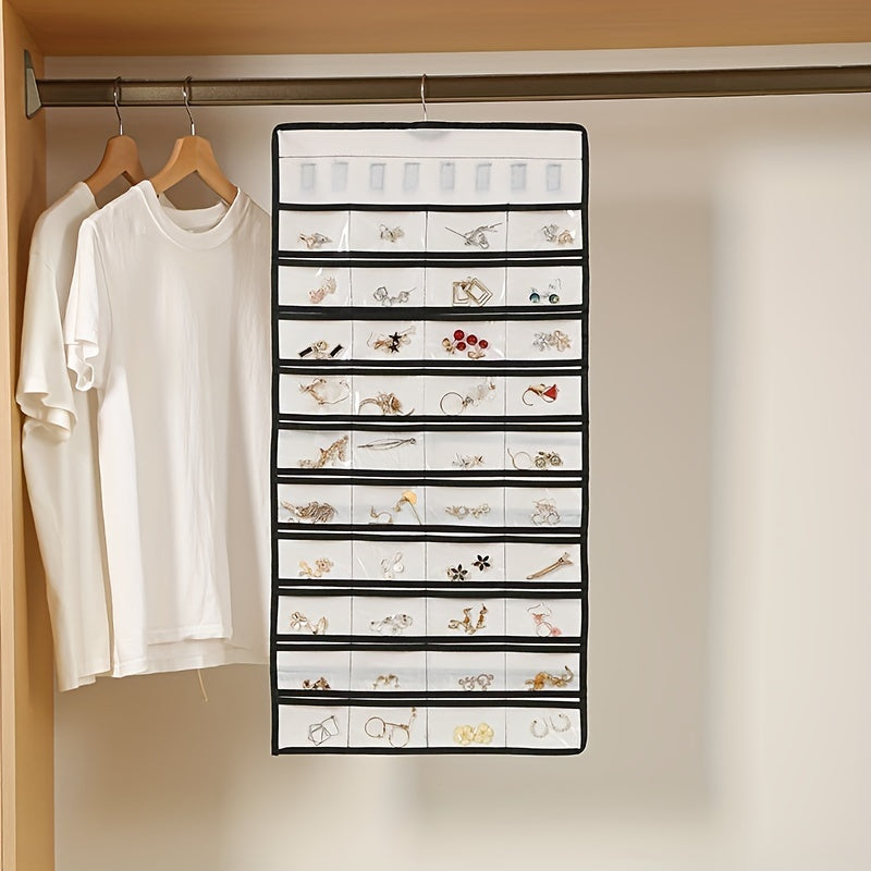Keep your small items organized and easily accessible with this hanging jewelry storage bag. Perfect for storing watches, sunglasses, earrings, rings, and other jewelry pieces.