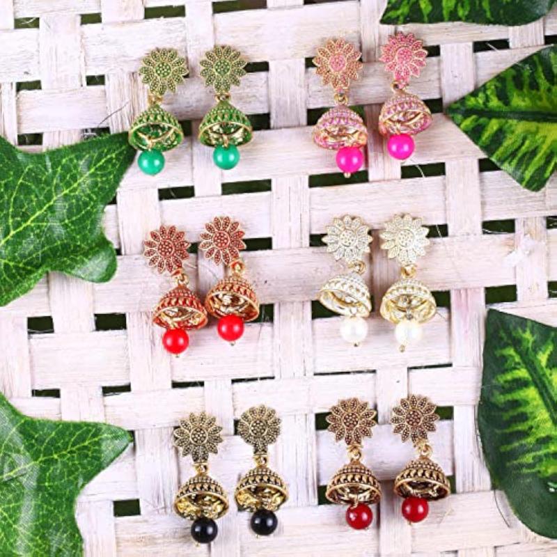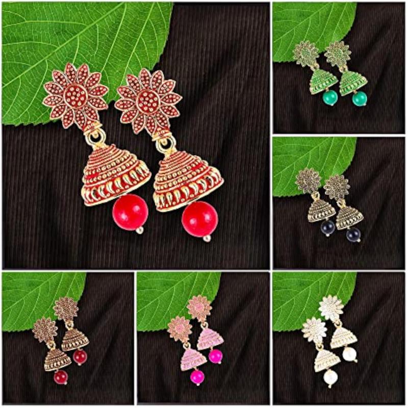 This combo set includes a collection of exquisite jhumka earrings designed for ladies. Perfect accessory for Valentine, traditional events, weddings, and more. Features intricate meenakari work to add a touch of elegance.
