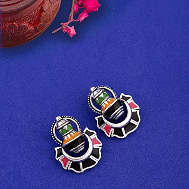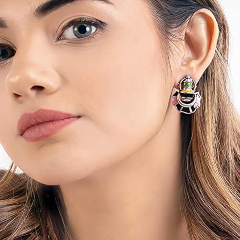 These elegant Chandbali earrings are beautifully enameled with intricate designs, perfect for any occasion.