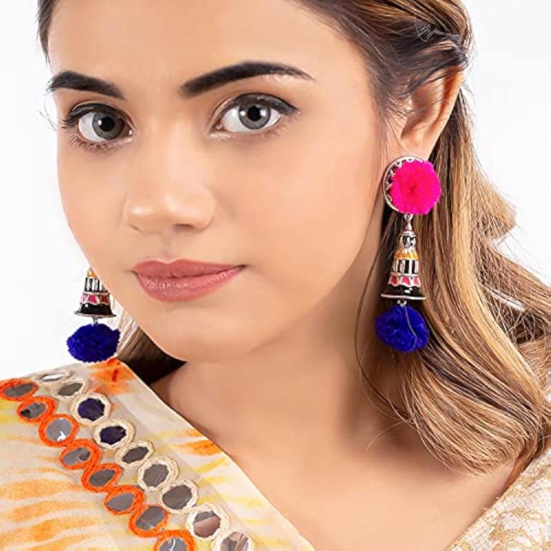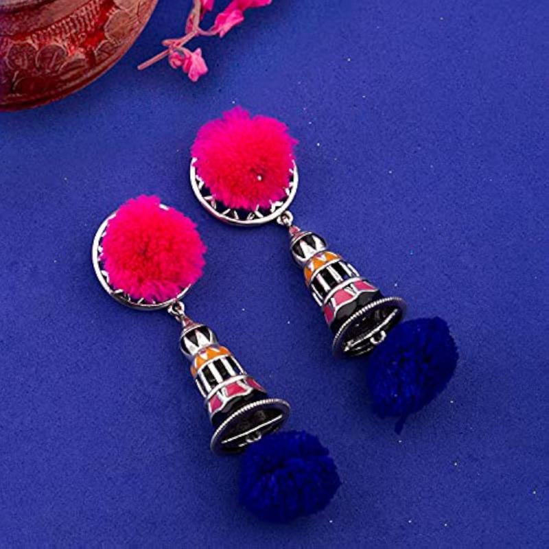 Add a pop of color and fun to your outfit with these trendy Kalbelia Pom Pom Long Earrings.