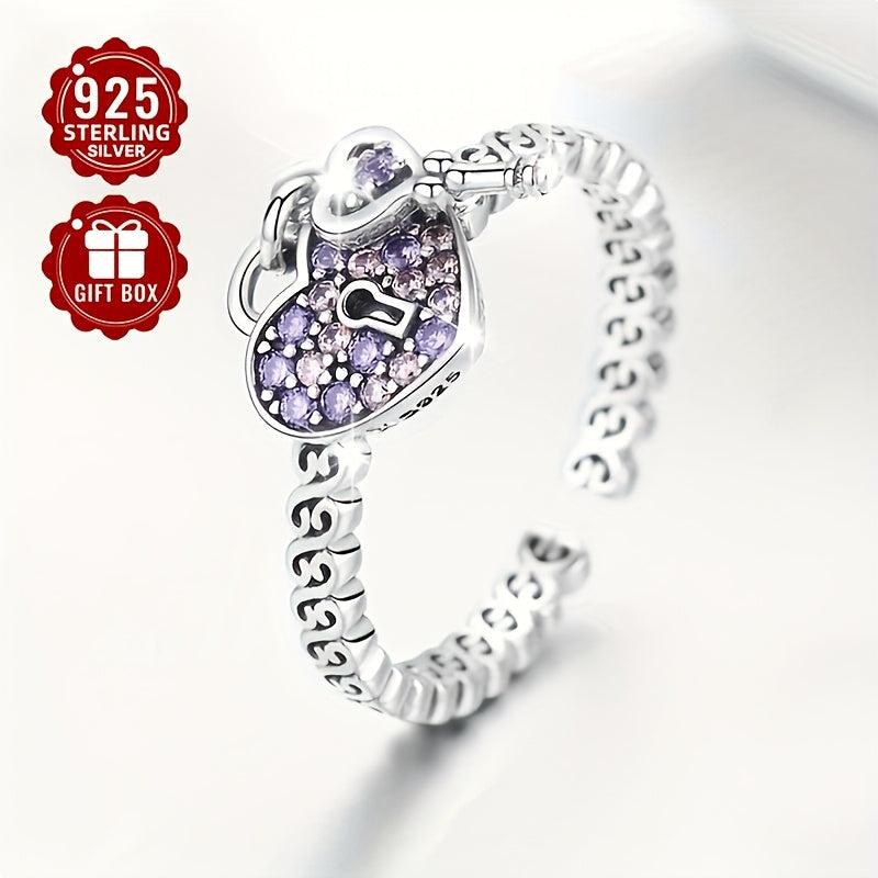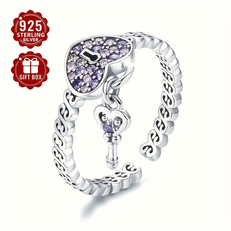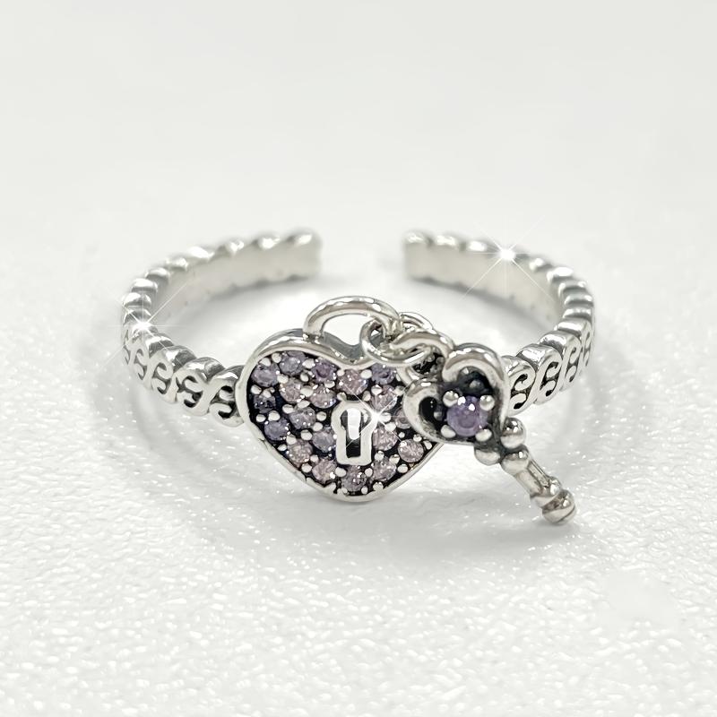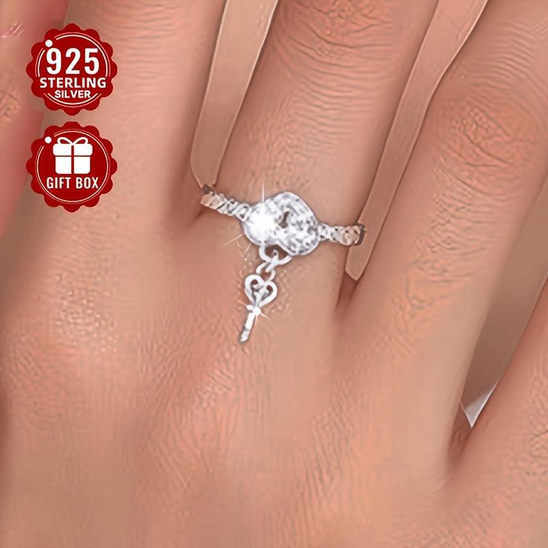 Elegant open ring with one key and one lock design, adorned with zirconia for a touch of sparkle. Perfect for formal events, parties, and dates.