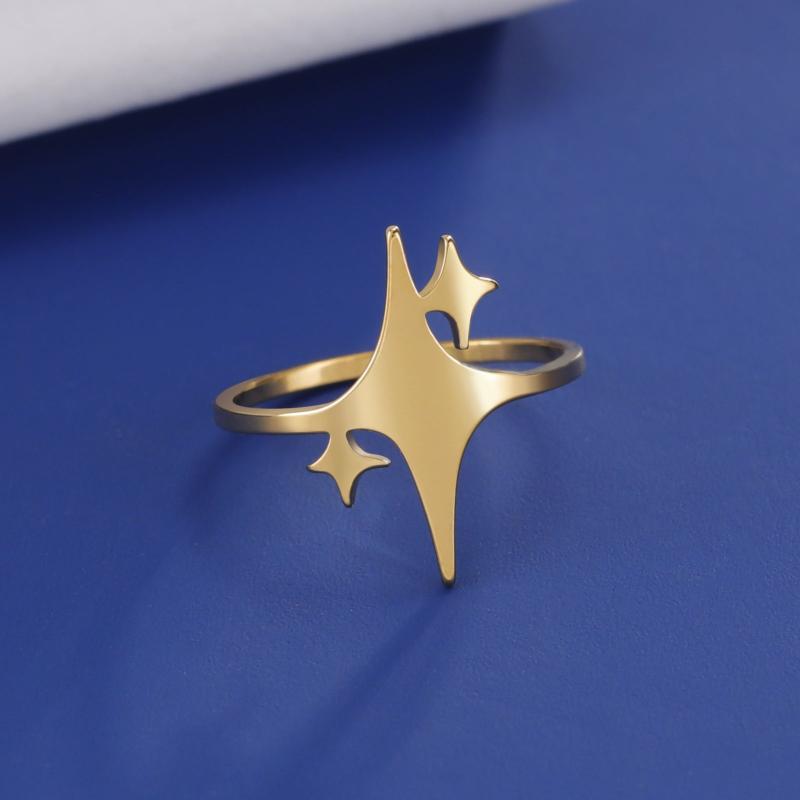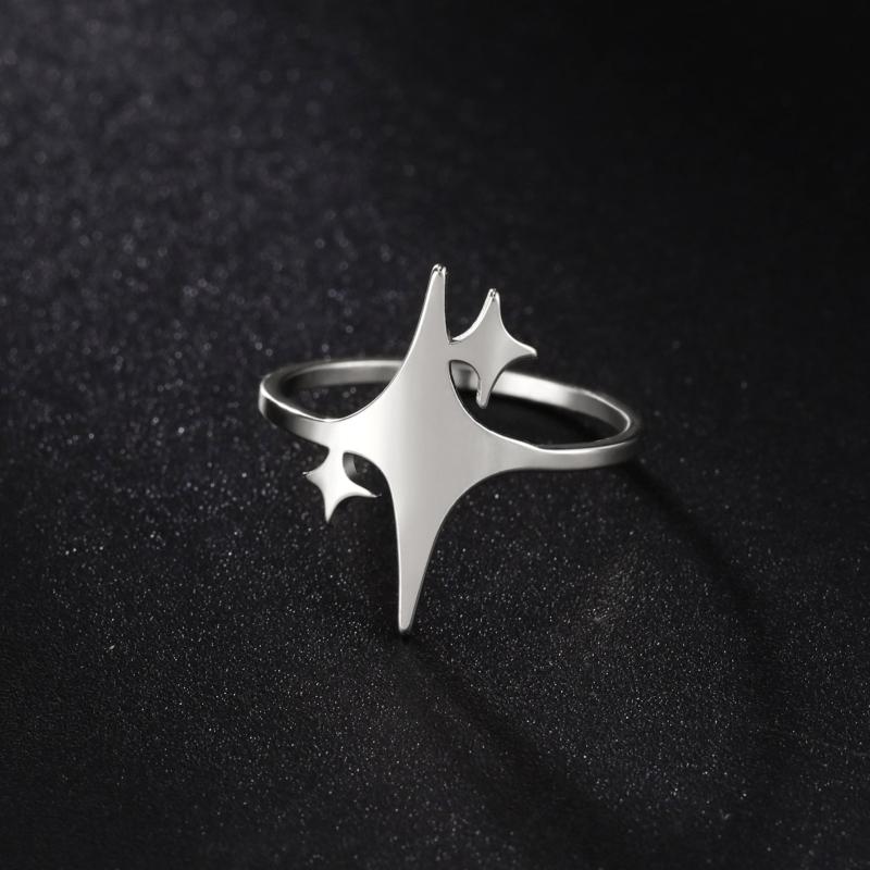 Add a touch of bohemian style to your look with this men's stainless steel ring featuring a four-pointed star design. Perfect for weddings, birthdays, or casual attire, this polished ring is a durable and stylish gift option.