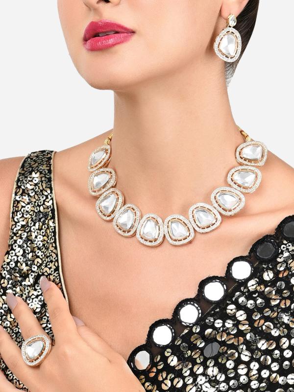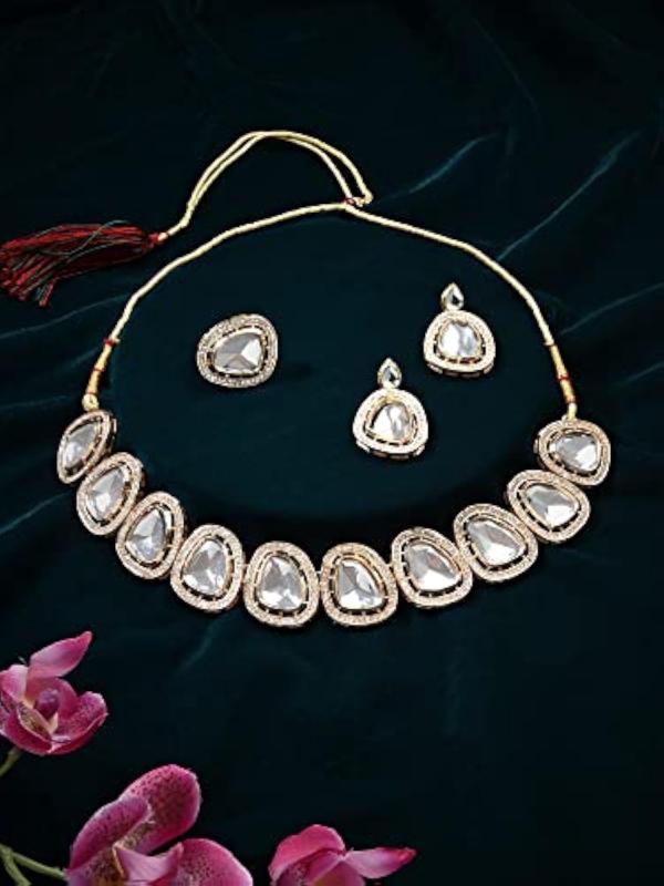 Elegant jewelry set featuring Kundan & Austrian Diamonds for women