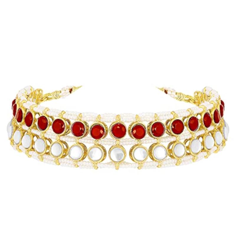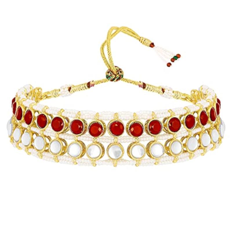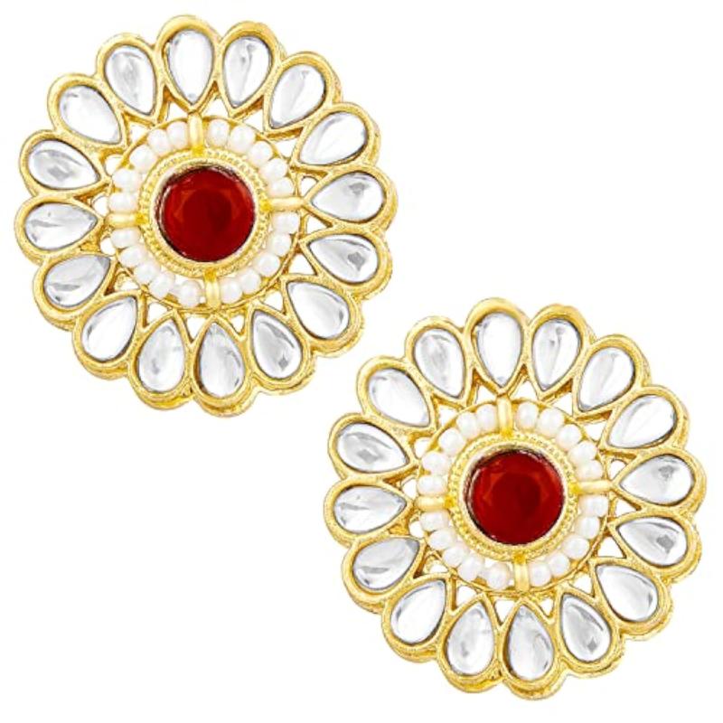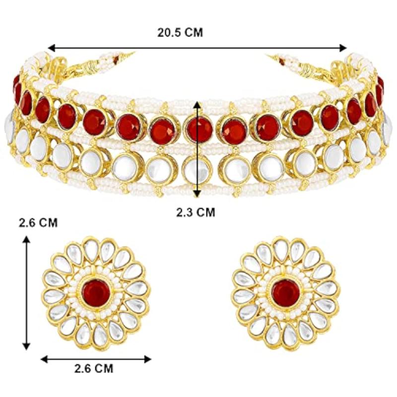 Elegant ethnic jewellery set featuring plated Kundan studded choker necklace and matching stud earrings.