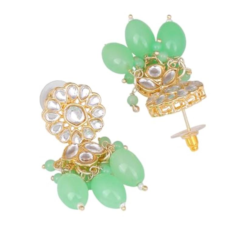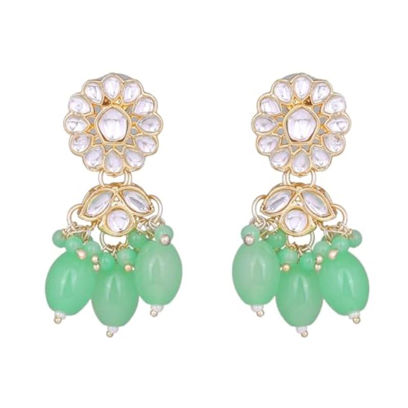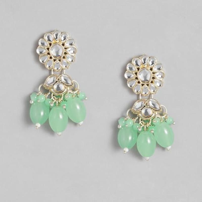 Exquisite plated flower design Kundan drop earrings with vibrant beads for a touch of elegance.