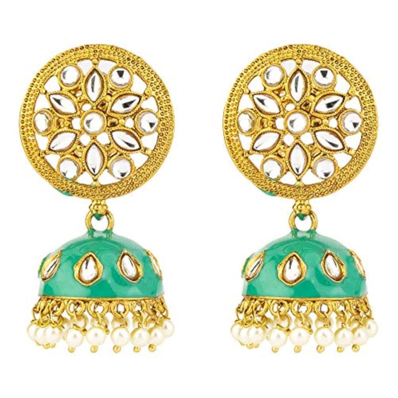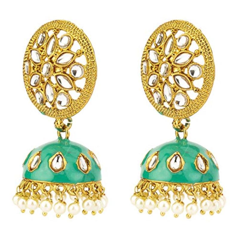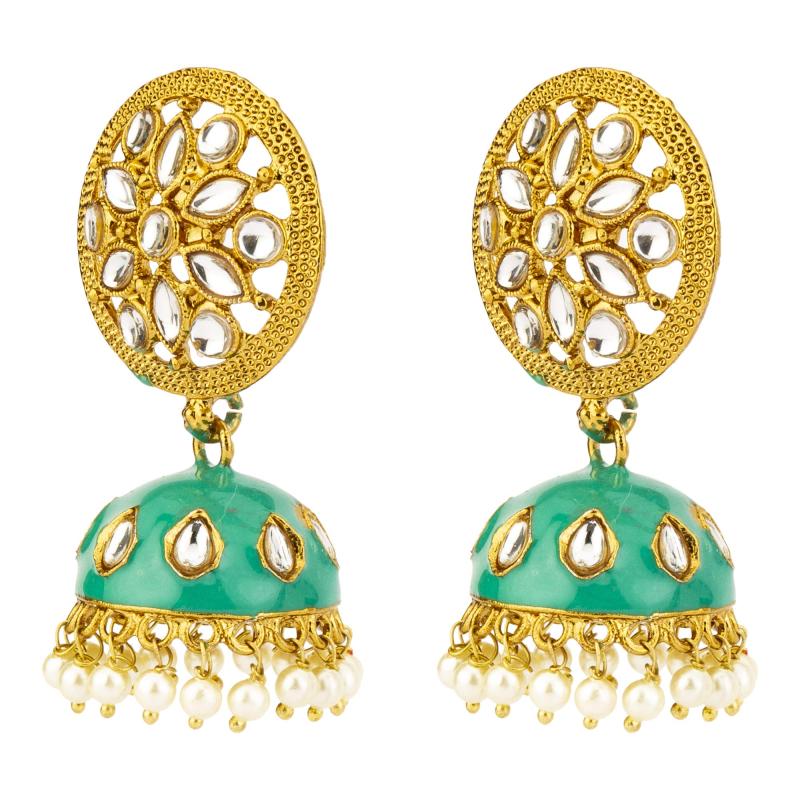 Elegant and delicate jhumki earrings with kundan and pearl plating, perfect for adding a touch of traditional charm to your outfit.