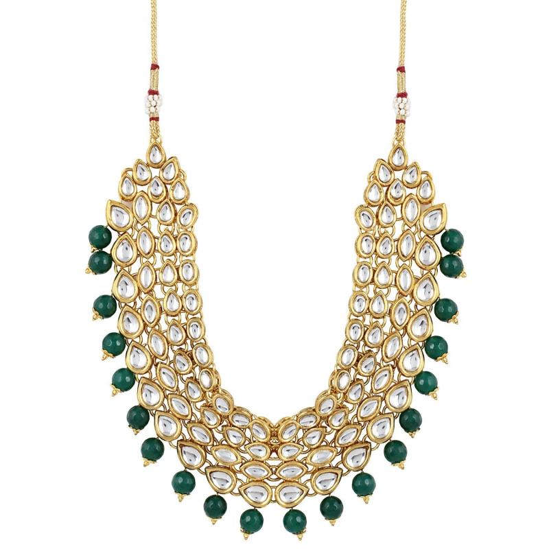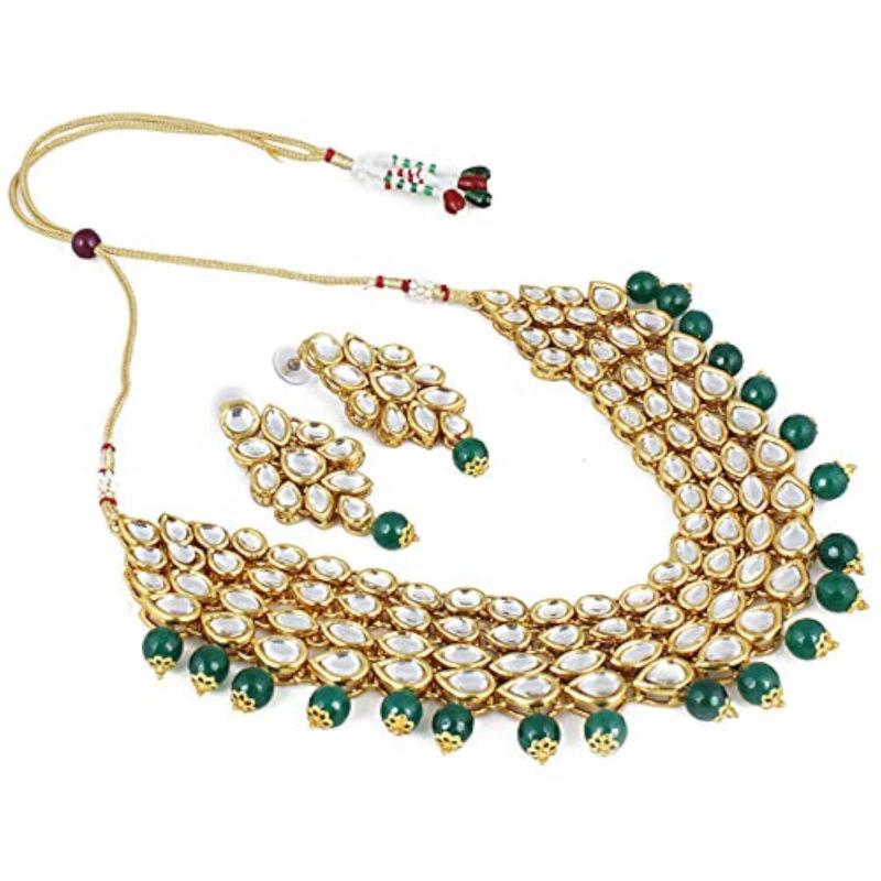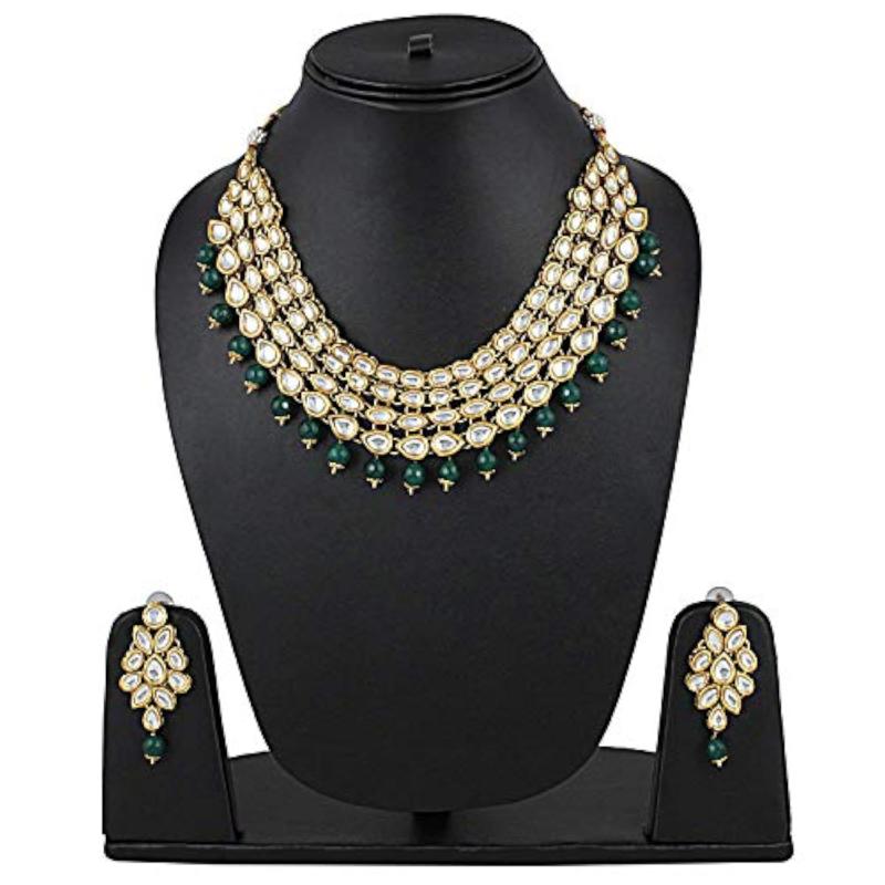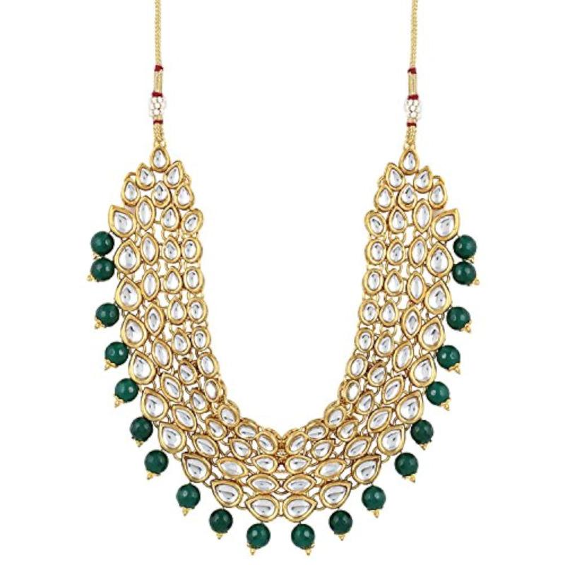 Enhance your traditional look with this exquisite Kundan necklace set. Perfect for weddings and special occasions.