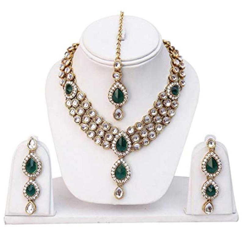 Stunning Kundan necklace set with earrings for a classic traditional look.